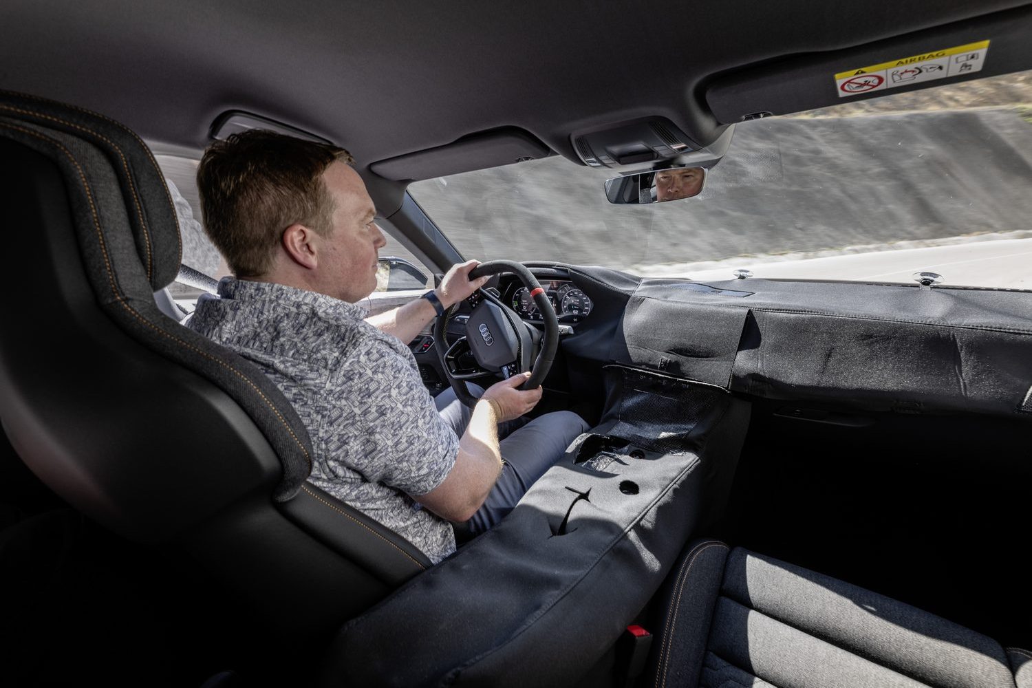 The interior of the prototype was mostly covered up so we can't tell you much about changes to that, though it's worth looking at the updates to the e-tron SUV (now the Q8 e-tron) to get a feel for how Audi is likely to modernise the cabin. You can see the glorious slim-rimmed, Alcantara-trimmed steering wheel in our single shot of the interior, along with special-looking sports seats.