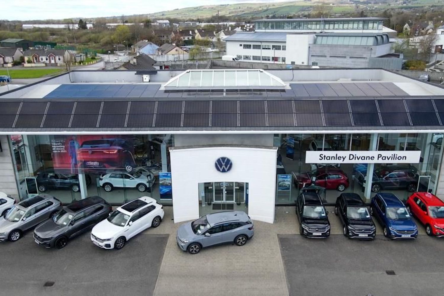 While the wider motor industry strives and struggles to wean itself off of carbon emissions, one Irish car dealer has already made the leap. Divane's Volkswagen Kerry, a long-standing VW dealer based in Castleisland, has covered the roof of its showroom with solar panels and reckons that it can now run the business entirely on renewable energy.