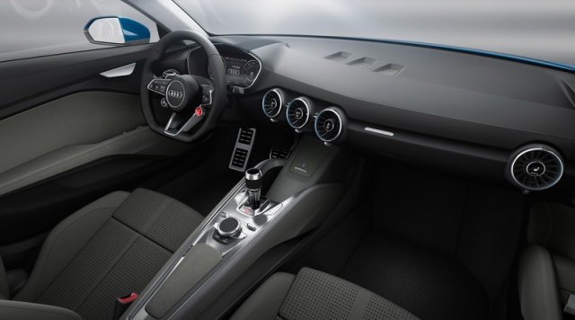 Audi rather ruined the surprise of the concept's advanced cabin by revealing it at the CES event in Las Vegas as that of the next-gen TT's, but of course the allroad shooting brake has a few tricks up its sleeves. The air vents (said to mimic jet engine design) contain individual controls for the climate control, ventilation and even seat heating. Not only that, but they extend out to meet an approaching hand. Meanwhile, the centre console moves with the driver's seat so the controls remain at the same distance away at all times.