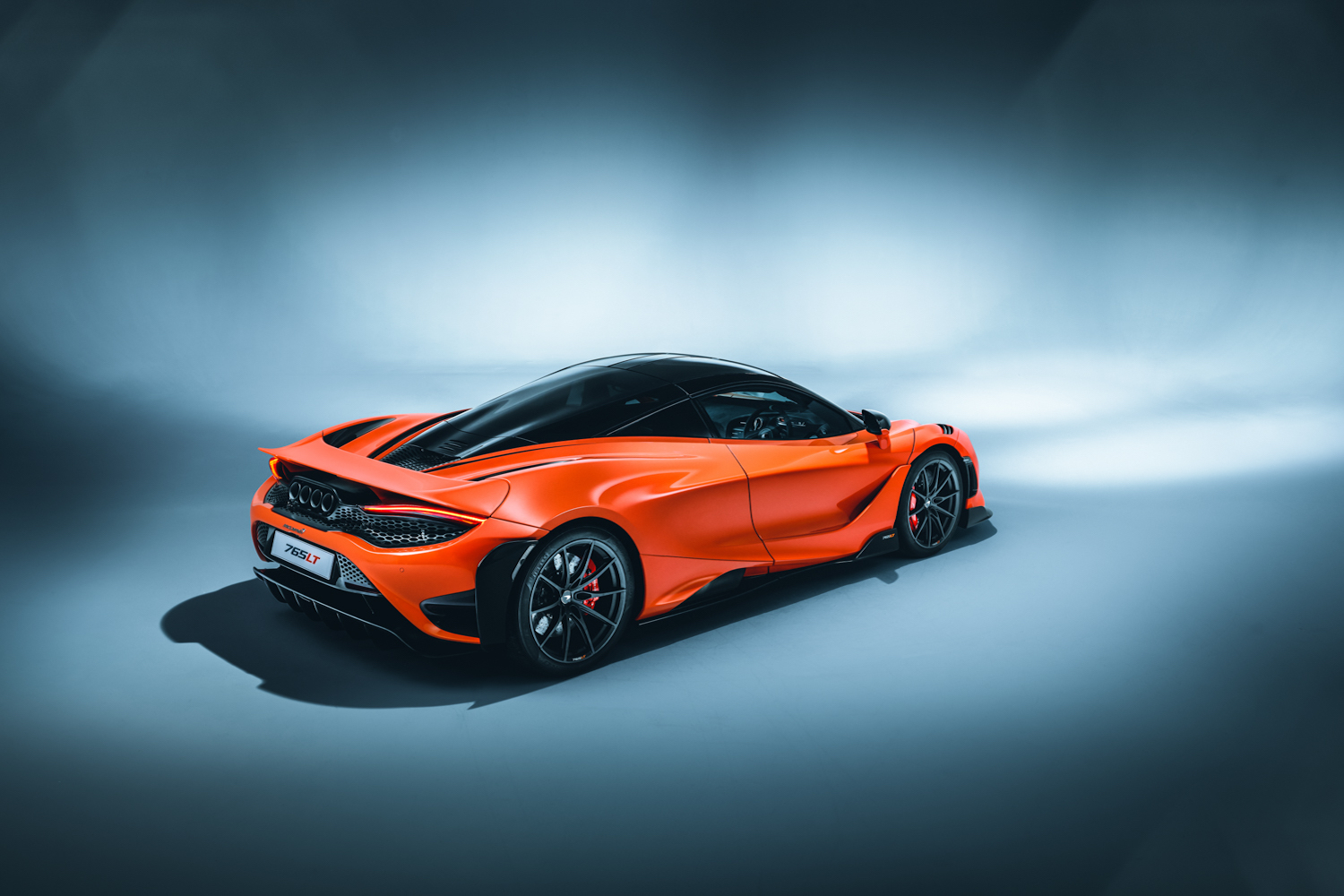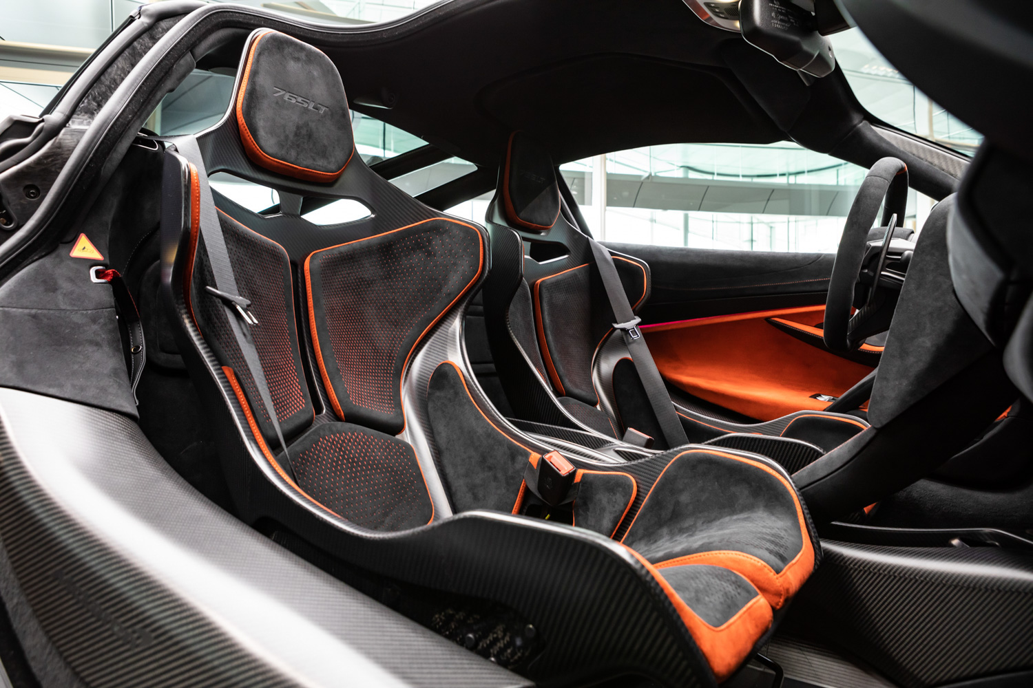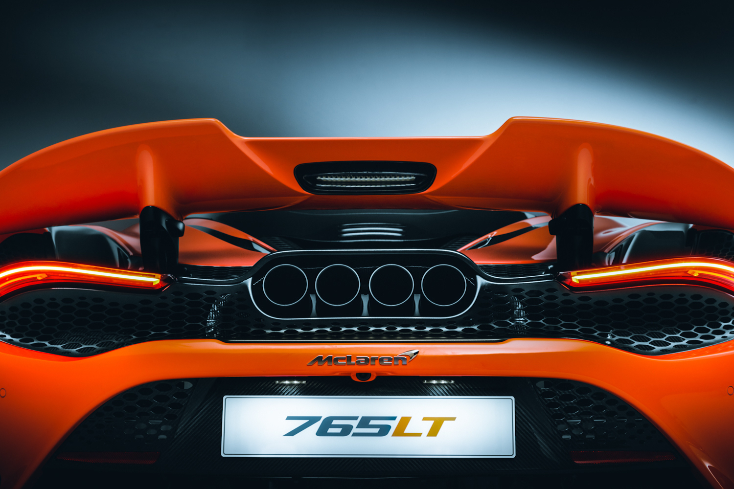 The 765LT was mentioned because it has an 80kg weight reduction to an overall dry-weight figure of 1,229kg when compared to its 720S source material. A big part of every McLaren's low weight is the carbon-fibre Monocage II structure, although the 765LT goes further with extensive use of carbon fibre for other panels and bodywork, lightweight side windows and motorsport-inspired polycarbonate glazing at the back of the car, and an exhaust system made fully of titanium - saving 40 per cent over an equivalent system made of steel.