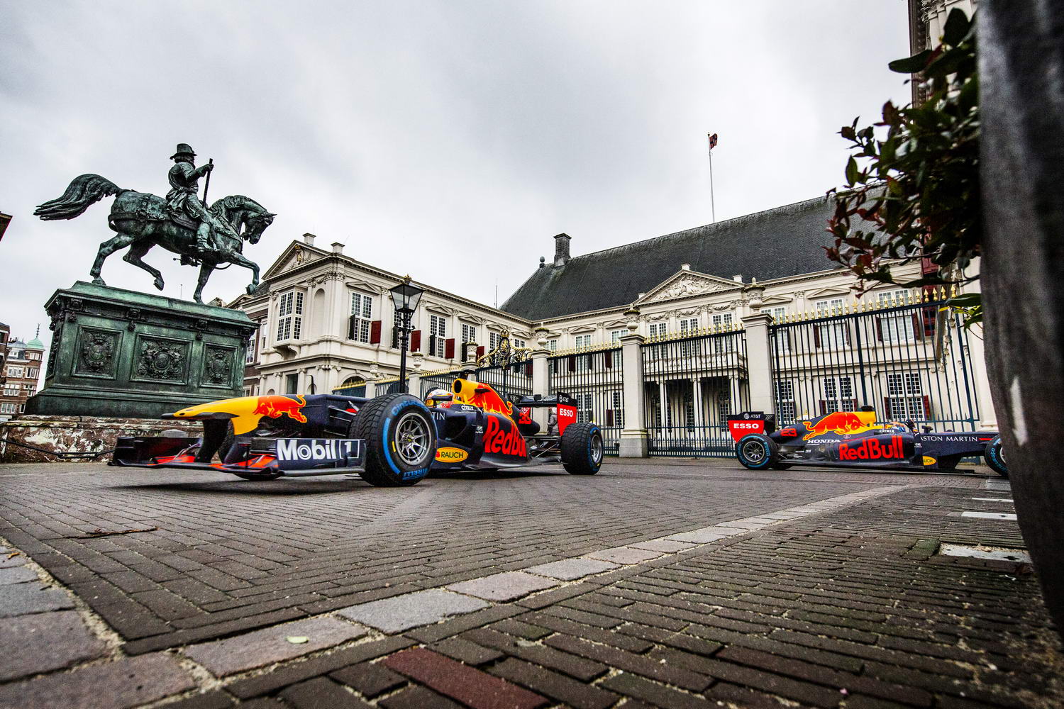 Red Bull has paraded two of its Formula One racing cars on public roads and streets in The Netherlands, and along a beach near the Dutch Grand Prix track, Zandvoort.