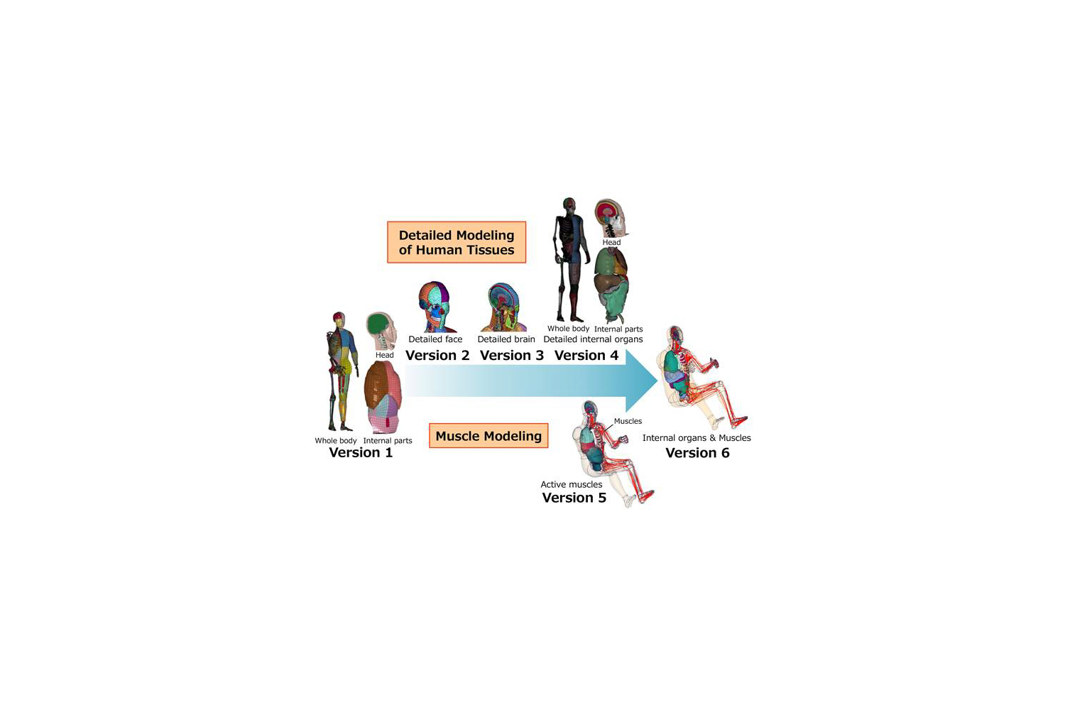 Compared to the physical crash dummies commonly used in vehicle collision tests, THUMS is able to analyse collision-related injuries in more detail, because it precisely models the shapes and durability of human bodies. Conducting simulations on computers also enables repeated analysis of a range of different collision patterns. The software can replicate child and adult bodies, and works for both pedestrian and vehicle occupant settings.