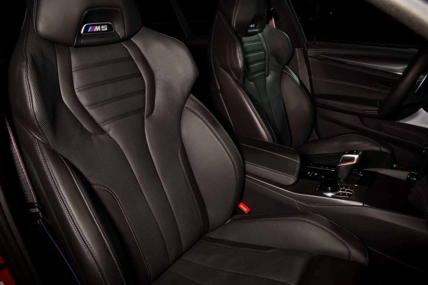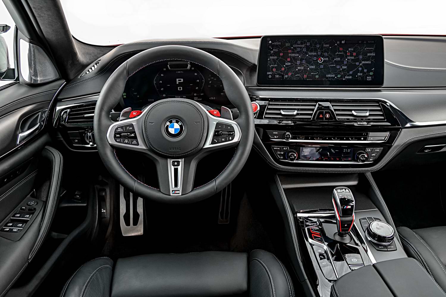 Variable damping and steering are fitted, as before, but the M5's dampers are new, coming from the BMW M8 Gran Coupe. M Compound brakes are standard, which use blue-painted callipers, though now, buyers can opt for black or red-painted callipers for the first time. Or upgrade to the M Carbon ceramic brakes with their gold-painted callipers.
