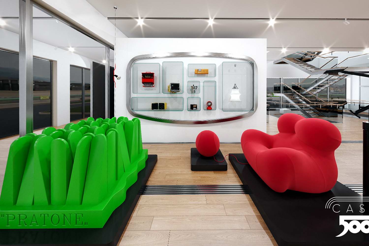 Icons of Italian design are exhibited in the Made of Italy area. These objects, one of which is the Fiat 500, subverted the rules of design and changed perceptions. The historical zone includes a multimedia journal of memories to explore a wealth of the content - interviews, adverts, events and awards - that made the Fiat 500 an international star. An unmissable collection of sketches and images recount the evolving design and the creative adventure that breathed life into three generations of Fiat's 'Cinquino'. There are also displays showing three interpretations of the new 500 by fashion houses Armani, Bvlgari and Kartell.
