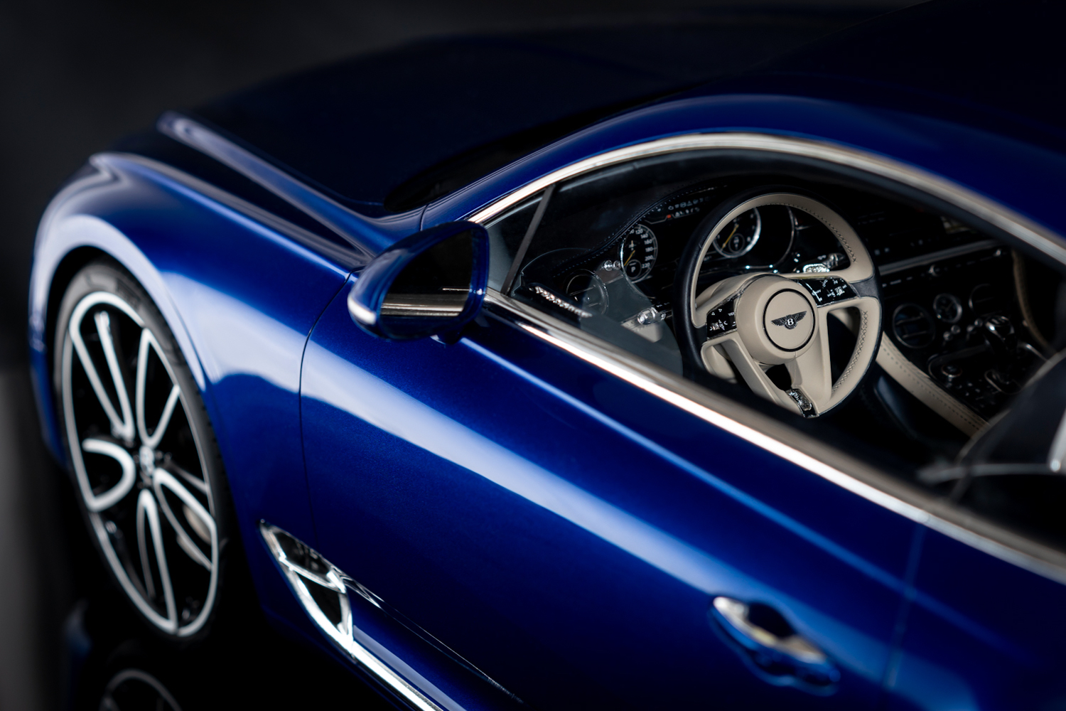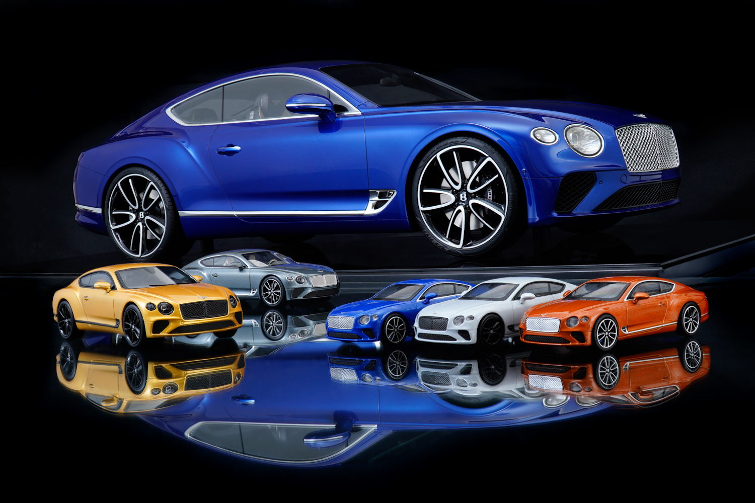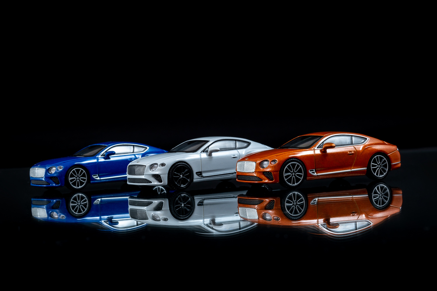 The grandee British luxury carmaker is now offering ultra-precise scale models of its Continental GT coupe, in 1:43, 1:64, and massive 1:8 sizes.