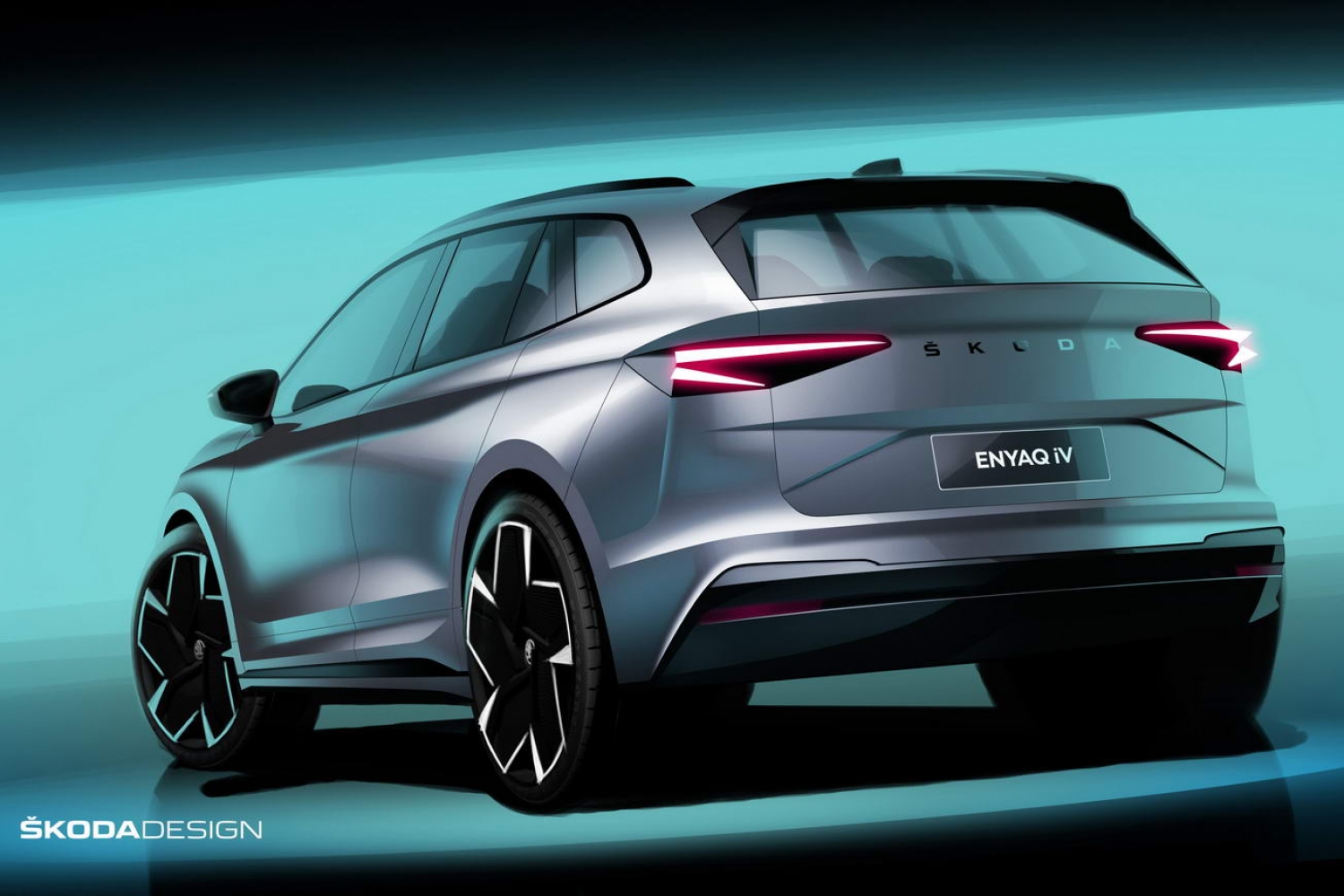 The Enyaq iV features a bold front design with a large grille graphic that, on higher-spec versions, will be illuminated. A new LED daytime running light signature adds to the sense of width, as does the design of the lower bumper area. As clean as the surfaces look in the sketches, the Skoda will feature conventional door handles and wheels that range in size from 18- to 21 inches in diameter - the largest wheels to appear on a production Skoda to date.