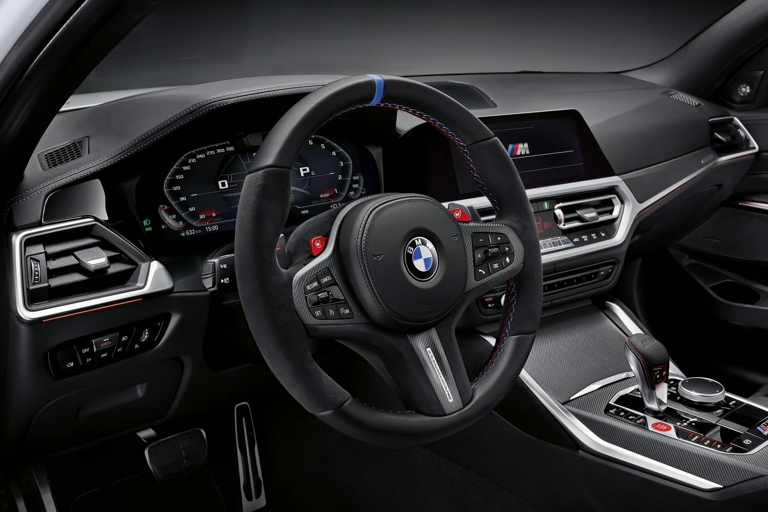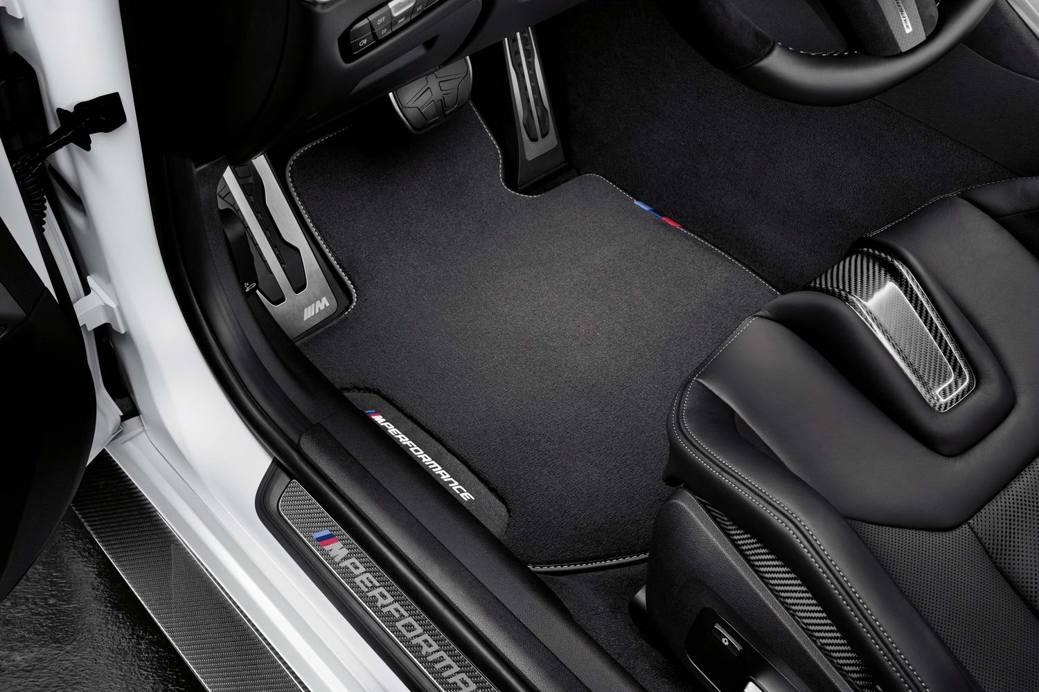 Inside, you can basically go nuts with carbon-fibre and Alcantara suede parts. Door-sill inserts, floor-mats, trim panels, you name it, BMW M Performance can coat it in open-pored matt carbon, or cover it with fake suede.