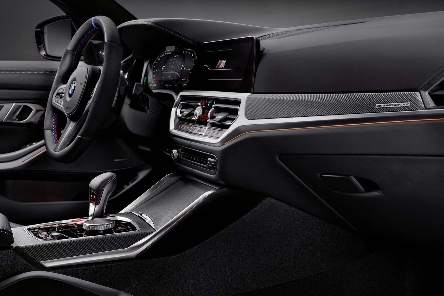 There's an M Performance steering wheel with an Alcantara rim, for better grip and, says BMW, steering feel, plus a blue centre-marker at the 12-o'clock position. There's also hand-stitched M seam finished in M colours, and the option of carbon shift paddles covered with an open-pored carbon fabric instead of the standard chrome surface.