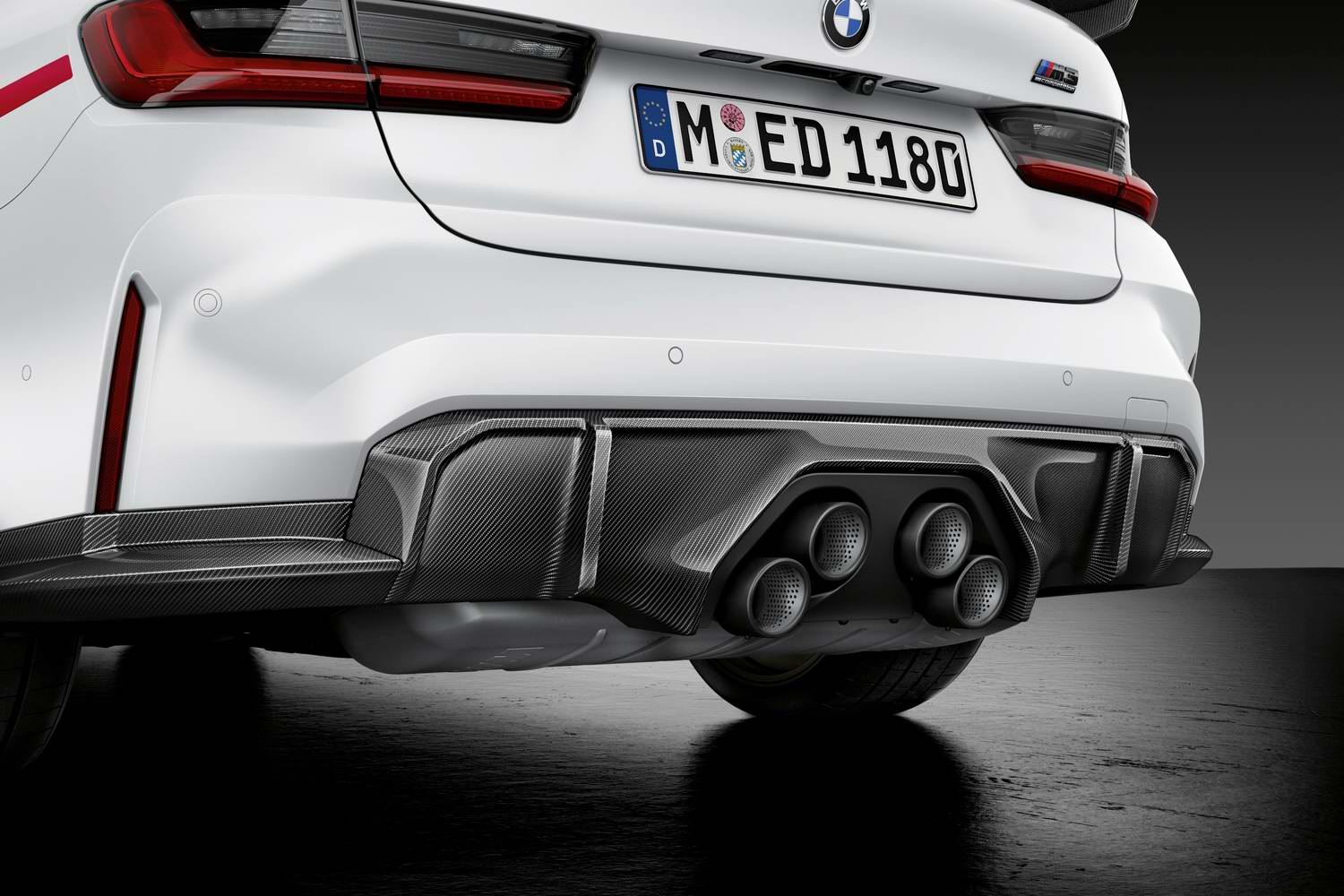 The 510hp Coupe and saloon can now access the full catalogue of BMW M GmbH add-ons, and they start with the M Performance exhaust silencer. The lightweight exhaust system with flap control, developed specifically for M models and based on experience gained from motor racing, weighs around 5kg less than the mass-produced component and also generates a more raucous sound. To finish it off there are four titanium, ceramic-coated tailpipe trims provided.