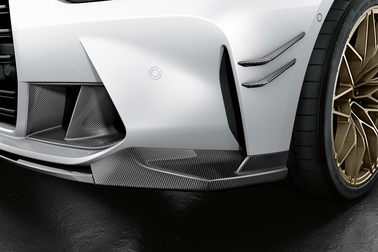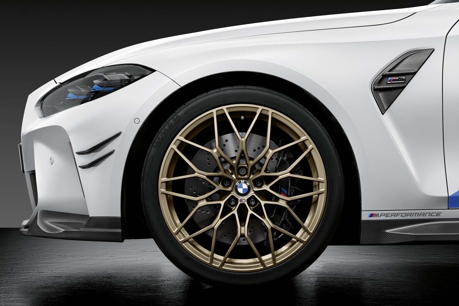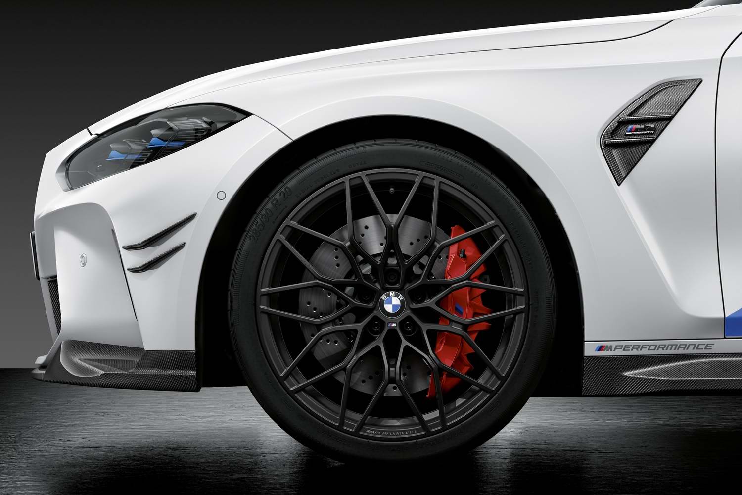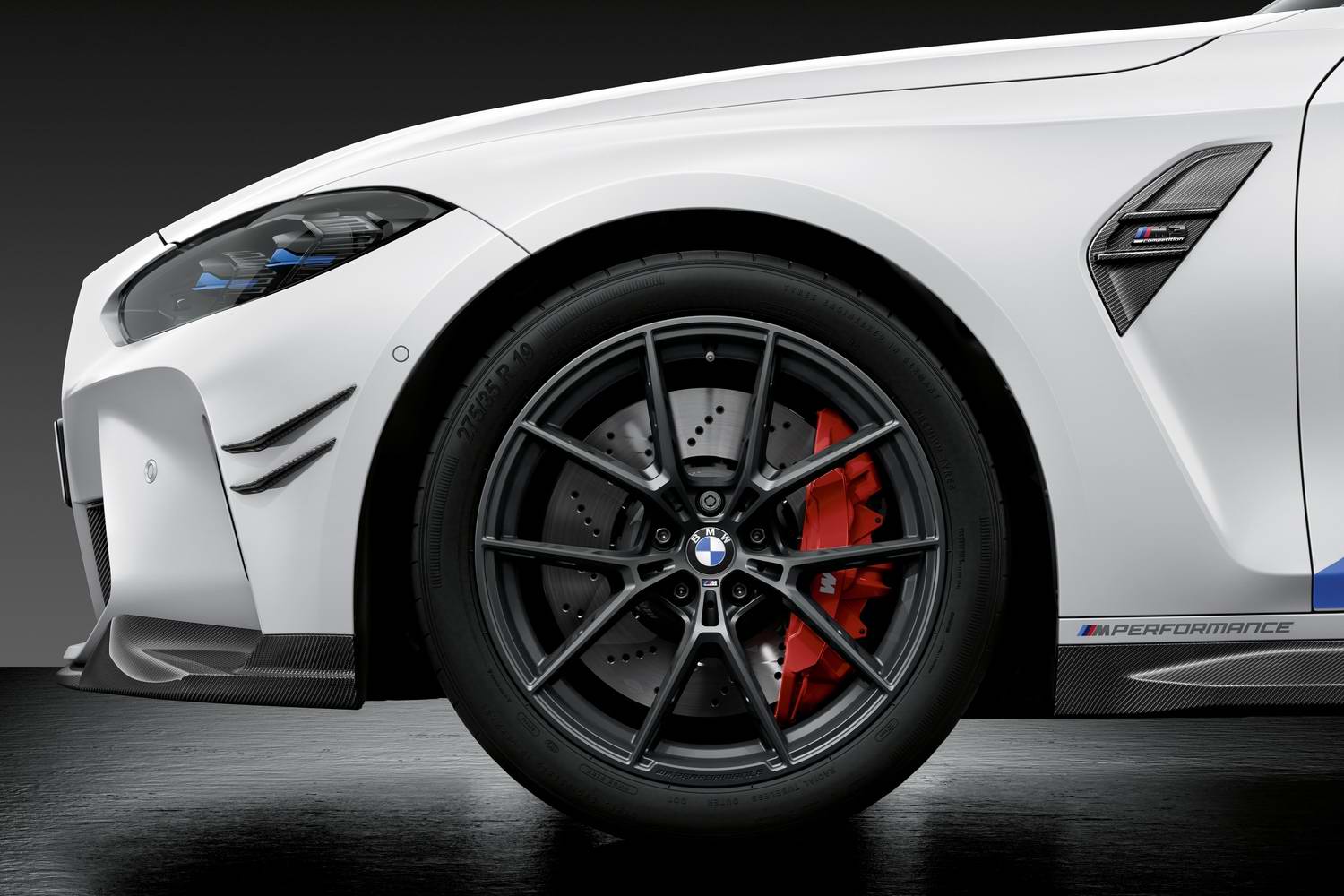 There's also M Performance sports suspension? Regular M3 or M4 not slammed enough for you? Then allow M Performance to provide you with new springs and dampers than can be adjusted to between 5mm and 20mm lower than standard (10mm is recommended). BMW says that, thus equipped, "the driver benefits from a lower centre of gravity, reduced rolling movement and even higher cornering speeds."