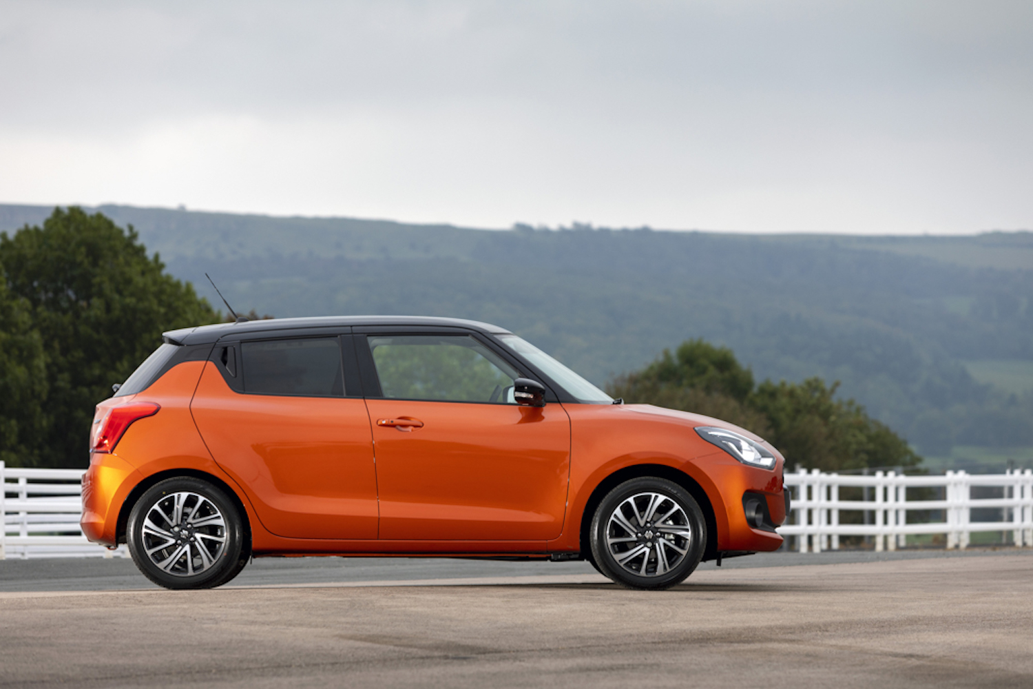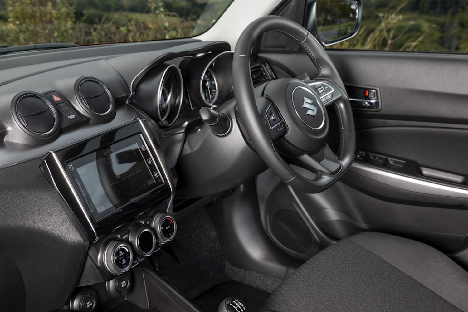 The SZ-T adds grey painted 16-inch alloy wheels, Dual Sensor Brake Support, Lane Departure Warning and Prevention, Weaving Alert, Rear Cross Traffic Alert, Blind Spot Monitor, Traffic Sign Recognition and rear parking sensors. SZ5 adds Navigation, 16-inch polished alloy wheels, automatic air conditioning, keyless entry and start, telescopic steering wheel adjustment, rear electric windows and door mirror side turn indicators. The Swift is available in one solid colour and six optional metallic colours with three 'dual-tone' colours incorporating a Black Pearl roof.