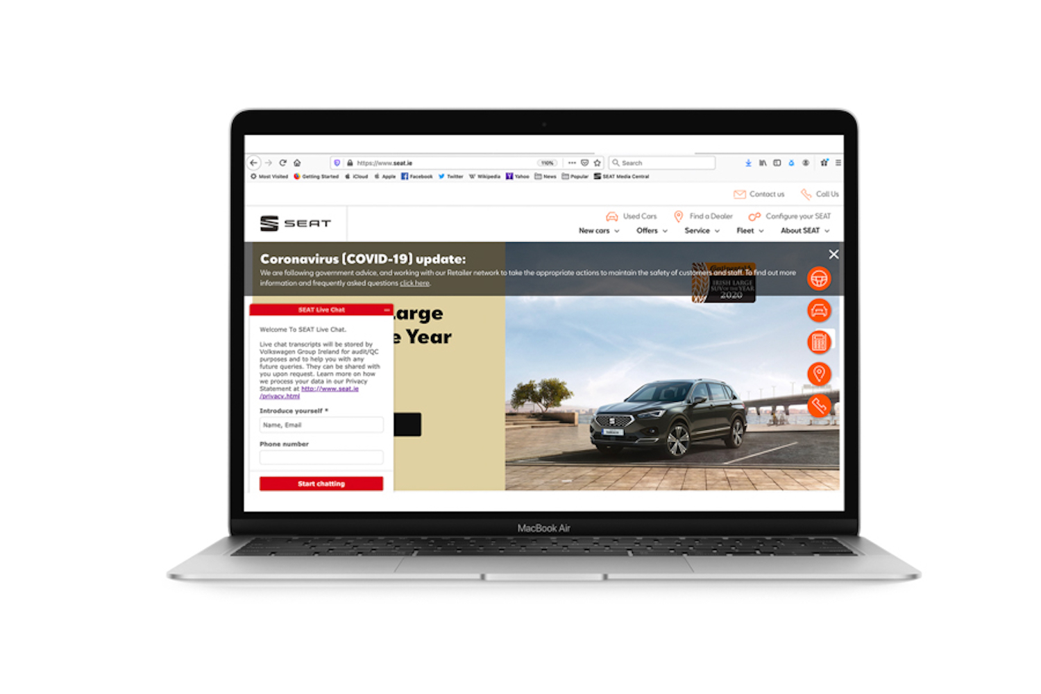 According to SEAT Ireland: "The safety and wellbeing of staff and customers is a key priority for SEAT and although physical showrooms will be closed under government restrictions, the SEAT Ireland website will provide services virtually including car configuration, live chat function, aftersales services and financial services."