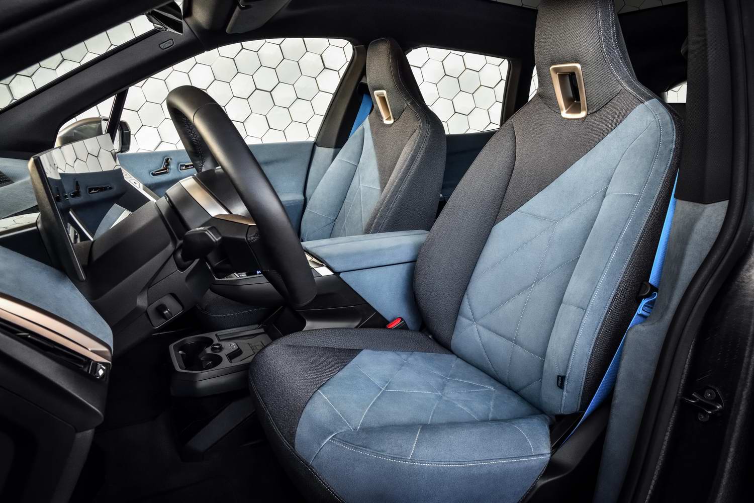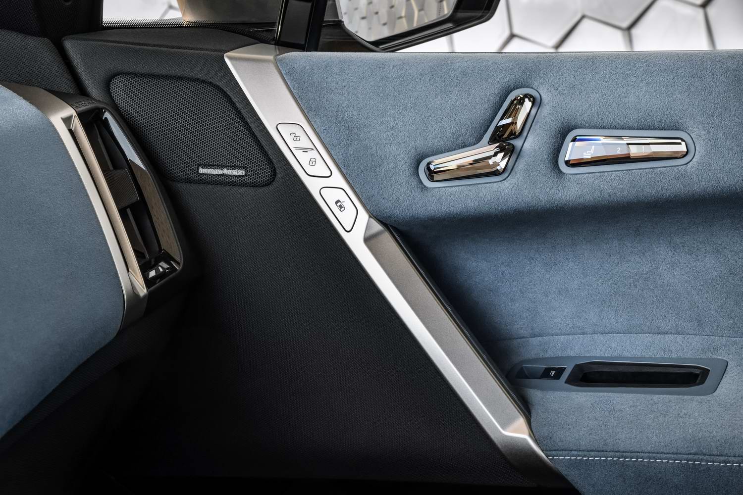 Pictured here is the 'Loft' trim, which includes distinctively patterned upholstery on the new seats, featuring integrated headrests. The covering is a mix of textile and microfibre fabrics and it extends to the distinctively styled door cards. There you'll see buttons to electrically open the doors, incidentally, along with controls to adjust the seating position. Other upholstery materials will be offered, including Sensatec and leather, while the seats themselves can be fitted with speakers. BMW also mentions the use of FSC-certified wood and recycled plastics.