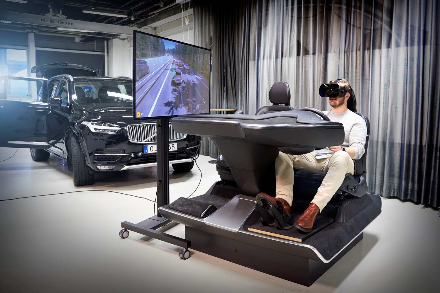 The Volvo rig has a moving driving seat, a steering wheel with haptic feedback and a VR headset to ensure that the visuals seen by those using the system are hard to tell from real life. It uses software from real-time 3D development platform Unity and also Finnish VR and mixed-reality company Varjo to render real-world driving situations for evaluation.