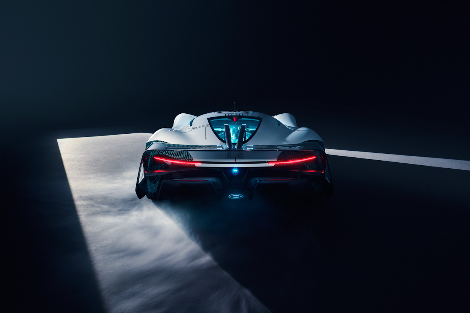 The all-electric VGT SV, as we shall append it from now on, has a top speed of 410km/h and an aerodynamic, slippery form designed to easily cut through the air. It features four Jaguar Racing and SV-designed electric motors, one more than the Vision Coupe's tallly of three, culminating in 1,400kW - that's 1,903hp, all backed up by 3,360Nm of torque. Flooding this to all four wheels with torque vectoring, the 0-100km/h time is said to be around 1.65 seconds.