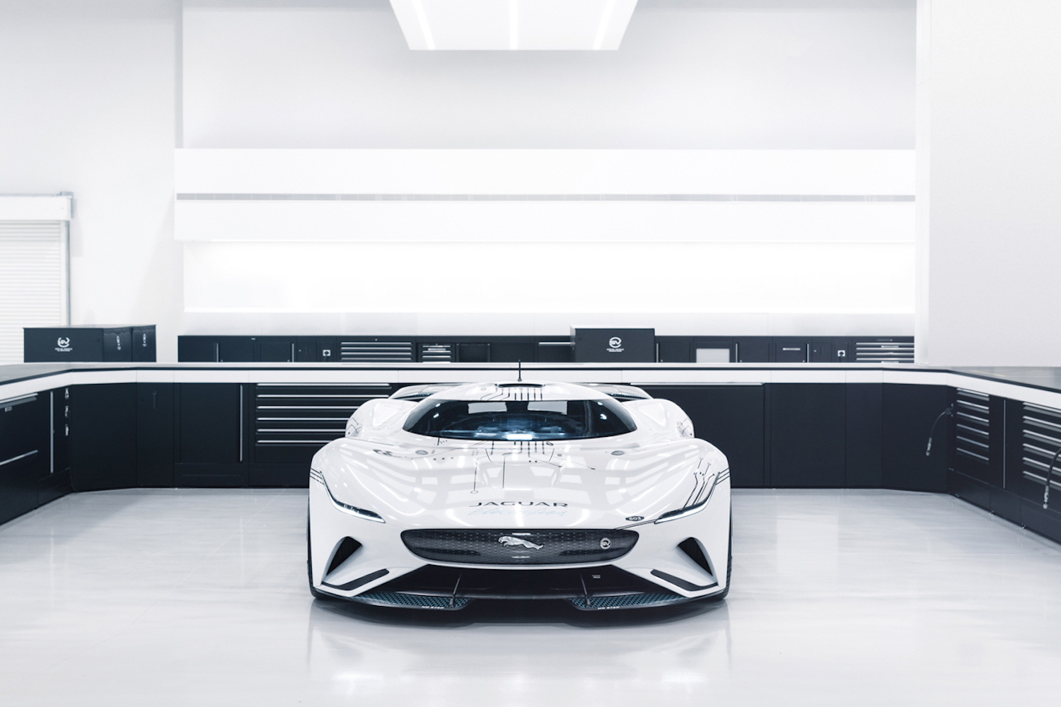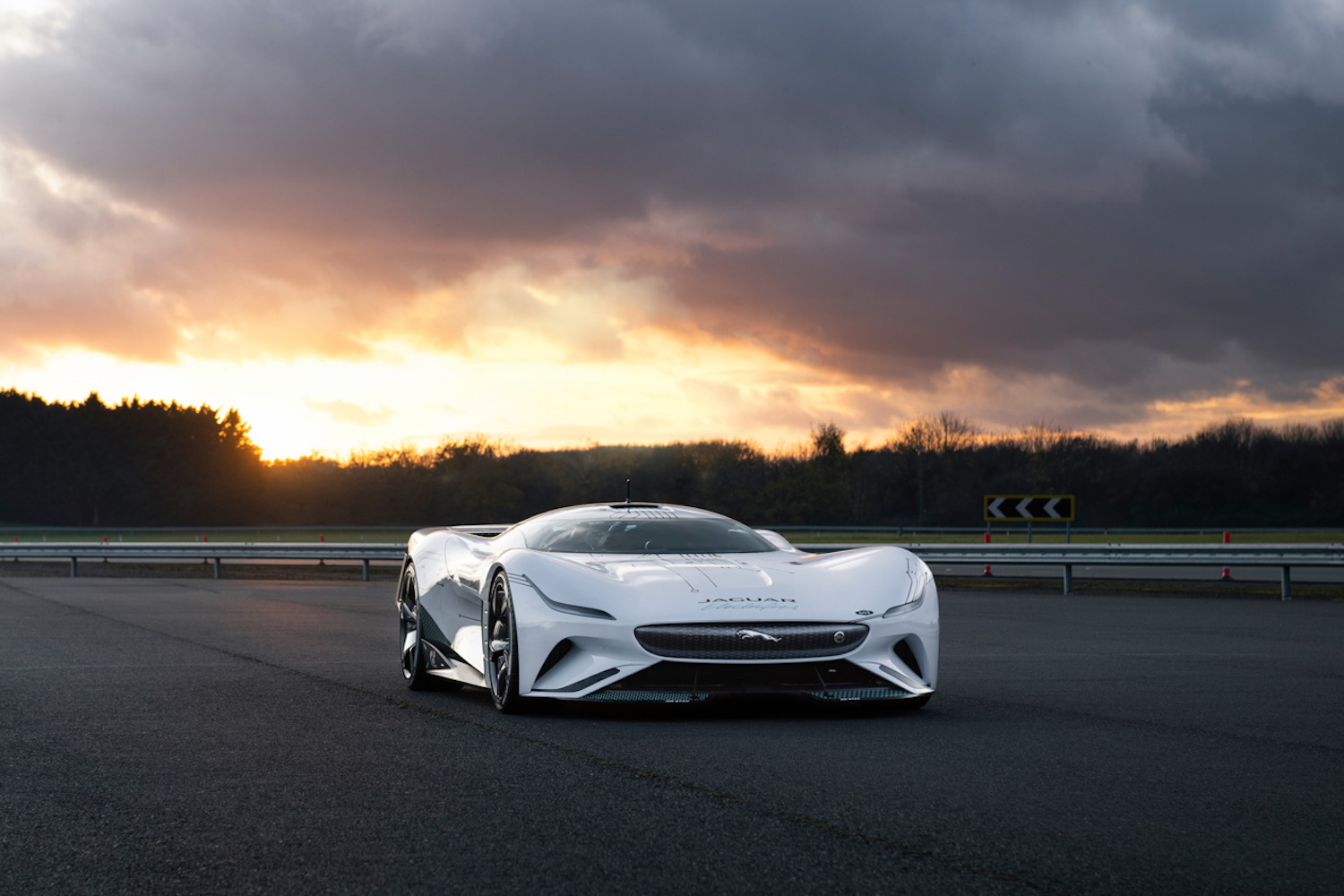 A second 300kW (407hp) motor was added to the front axle to increase the overall outputs to 1,903hp and 3,360Nm. Each of the four motors drives its own wheel through a single-speed transmission. Power comes from a lithium-ion battery pack mounted low in the Jaguar's bodywork, to ensure strong handling and racing characteristics. Thermal management is handled by a liquid-nitrogen circuit, allowing the battery to provide maximum power for longer by staying in its optimal temperature range, and the cooling set-up is linked to the boost button in the cabin. Final point? The VGT SV has a 40,000rpm redline. And no, that's not a typo with an extra nought in it.