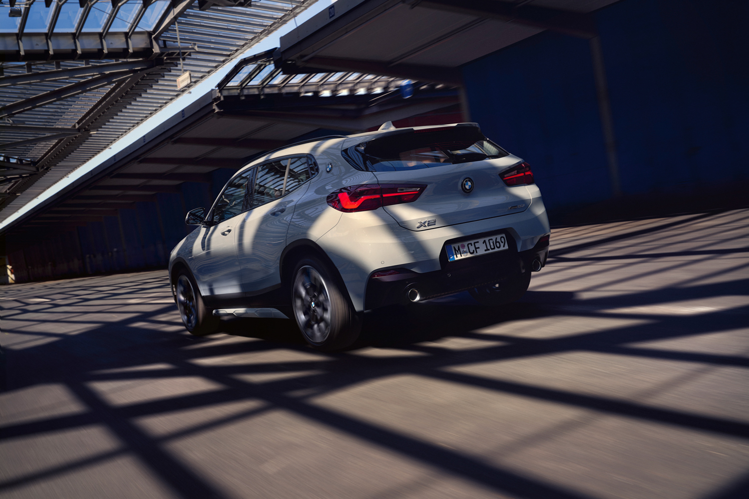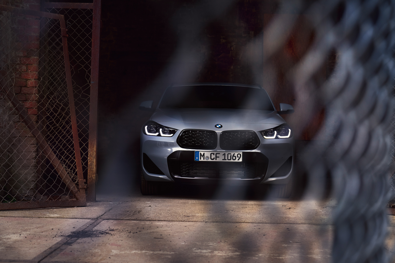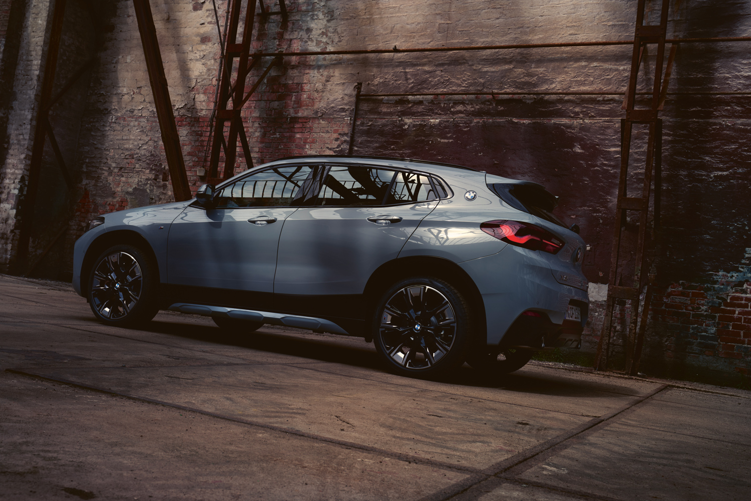 The BMW Individual High-gloss Shadow Line comes as standard, so all of the exterior chrome is excised in favour of glossy black trim. The door mirrors come with puddle-light projectors, which shine an X2 logo onto the ground when the door is unlocked or opened at night.