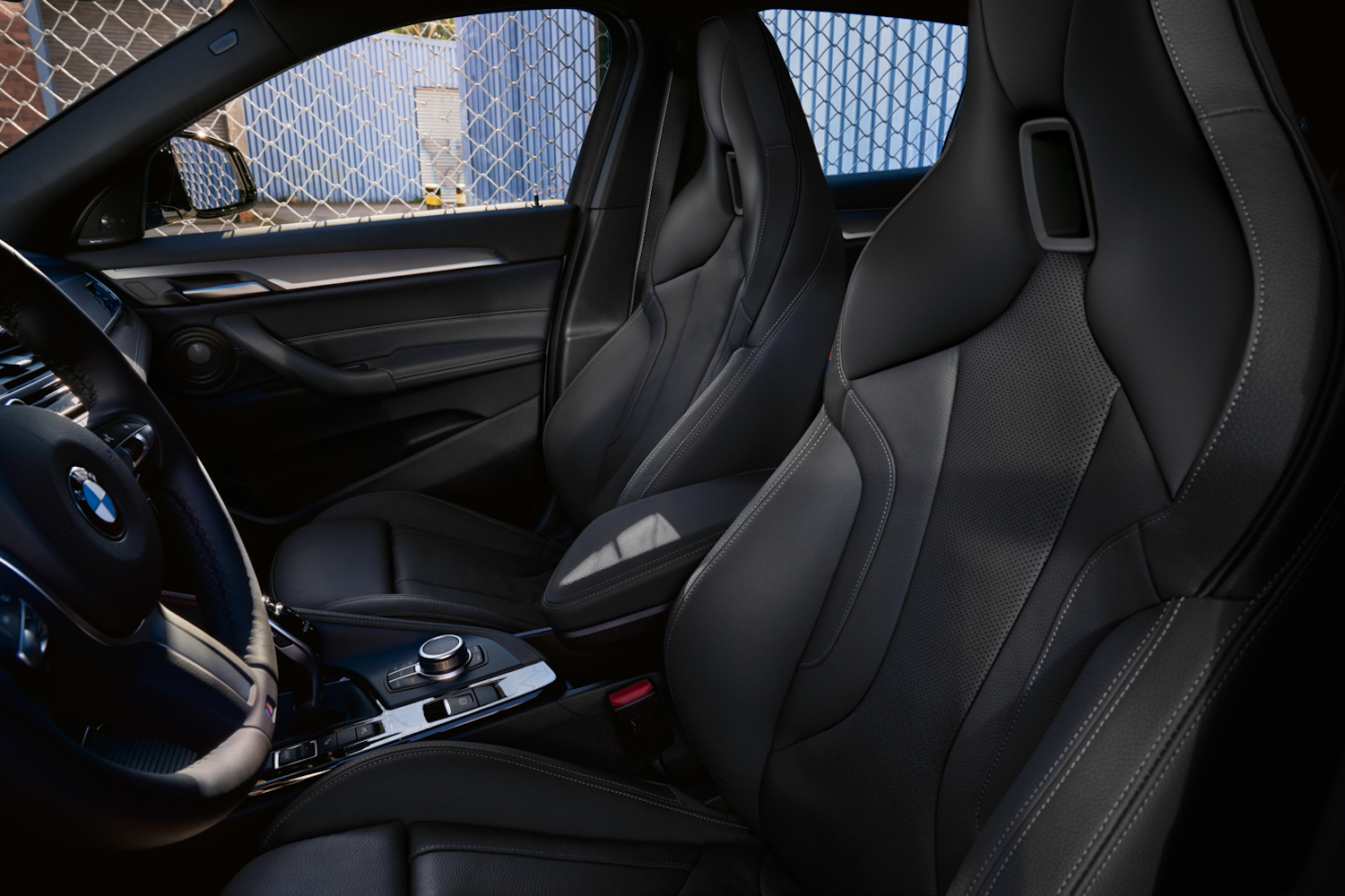 Inside, you get M-Sport bucket seats, with integral headrests, in black Dakota Leather. There's grey contrast stitching everywhere, and aluminium plates on the doorsills. There's also an optional panoramic roof. The M leather steering wheel comes as standard, as does a car key featuring an exclusive M badge. Cars with a manual gearbox also have a gearshift lever with M badging. The interior trim strips are in Aluminium Hexagon Anthracite, the BMW Individual headliner in Anthracite.