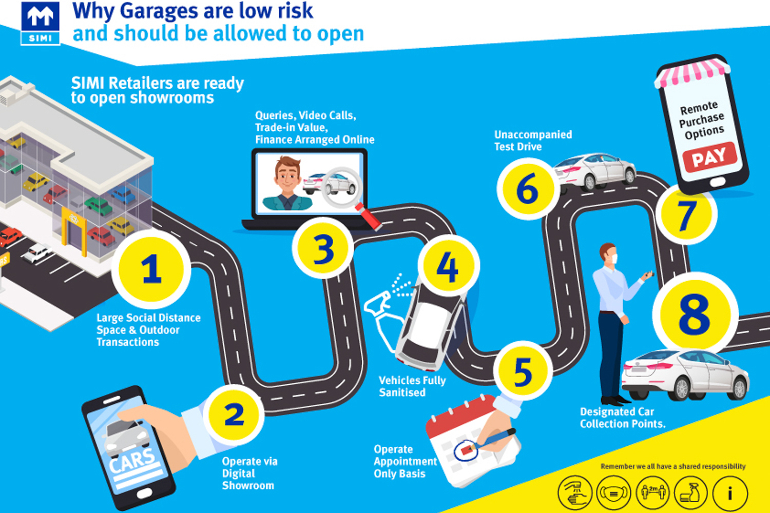 According to research by the Society of the Irish Motor Industry (SIMI, which represents Ireland's dealers and importers), 75 per cent of people would feel safe in visiting a car dealer. In a national survey conducted by Behaviour & Attitudes, car dealerships and garages were ranked first out of eight non-essential retailer categories as the most comfortable to visit.