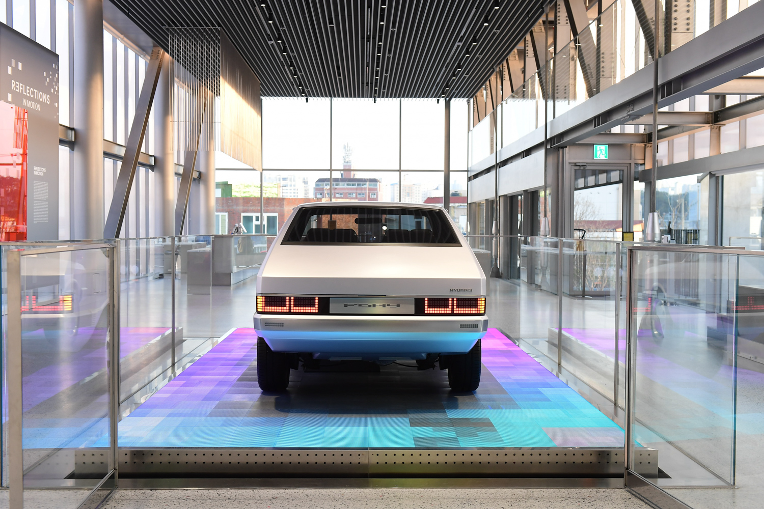At first glance, it looks like a nicely restored original. Underneath, though, this Pony is a bit more sophisticated than that four-cylinder 1.3 hatchback that first rolled out of Hyundai's factory. This one is, in fact, electric although thus far Hyundai isn't mentioning any specific performance nor range data (presumably because it's designed to sit on a stand in a museum, not to be seriously driven).