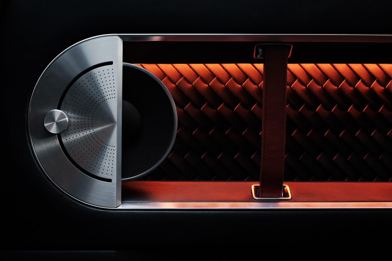 Inside, though, the cool factor gets ramped up a notch or twelve. Instead of digital instruments, there is a rack of 'pixie' vacuum tubes, which light up with the appropriate number to display your speed or range. The whole cabin has been hand-finished in brushed aluminium and leather, and the bucket seats are bespoke made for the car. There are other touches - a voice-activated steering wheel (we assume that's for infotainment functions, rather than for actual steering) and a little touch-sensitive pad for gear selection, with a groovy, retro H-pattern on it. To bring things bang up to date, there's a Hyundai-branded electric scooter in the boot.