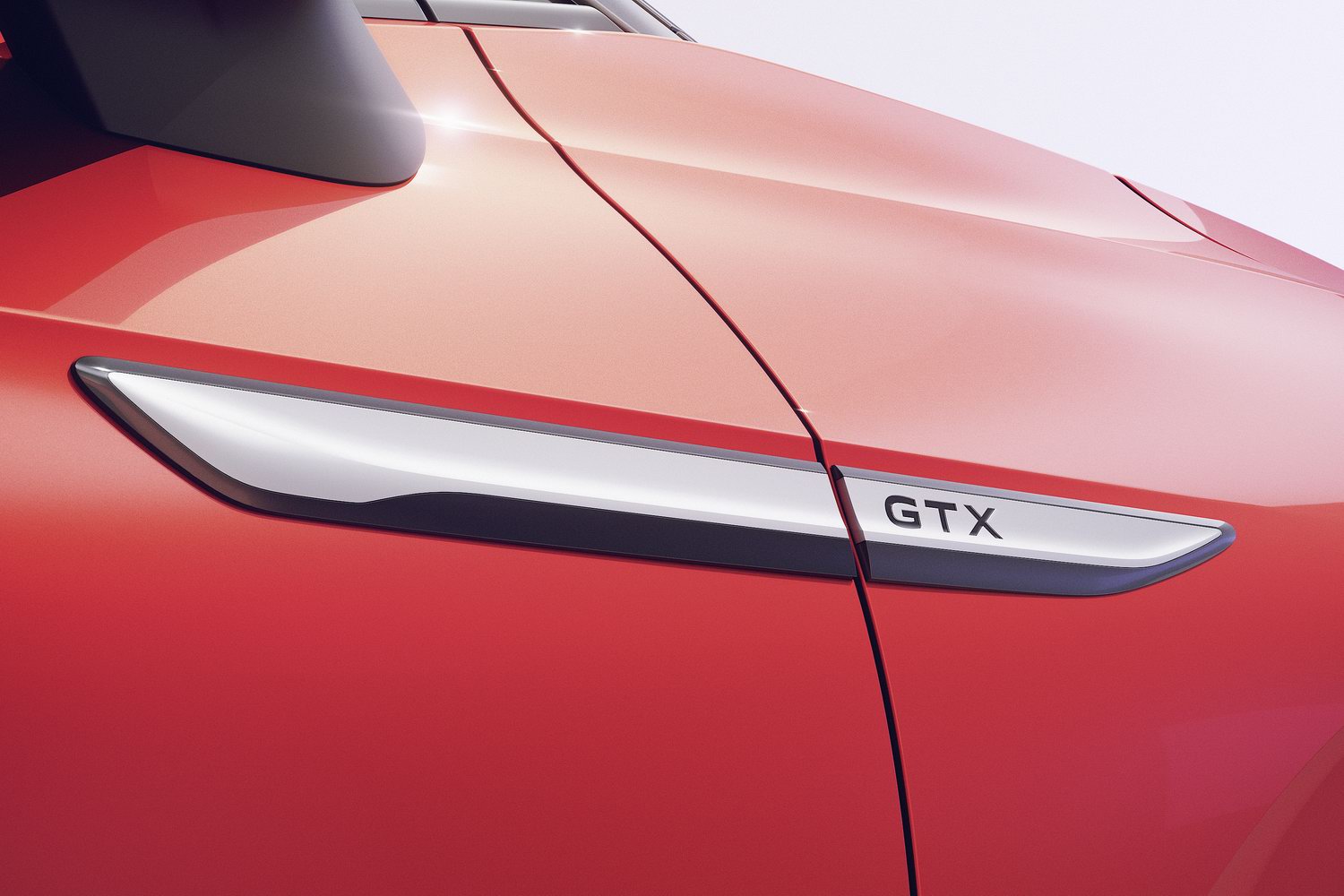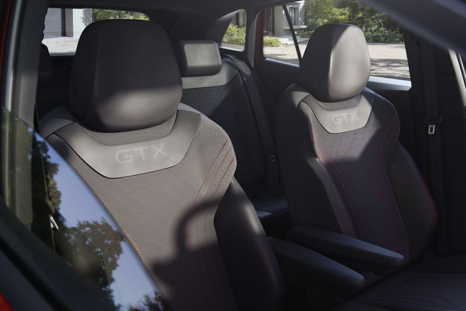 The interior gets a new colour scheme, with 'X-Blue' for the dashboard and leatherette door card inserts, contrasting with red accents and seams on the seats. There's a GTX badge on the steering wheel, on the sill plates and on the front seat backrests. Fabric upholstery is standard, with leatherette panels, as is 30-colour ambient lighting.