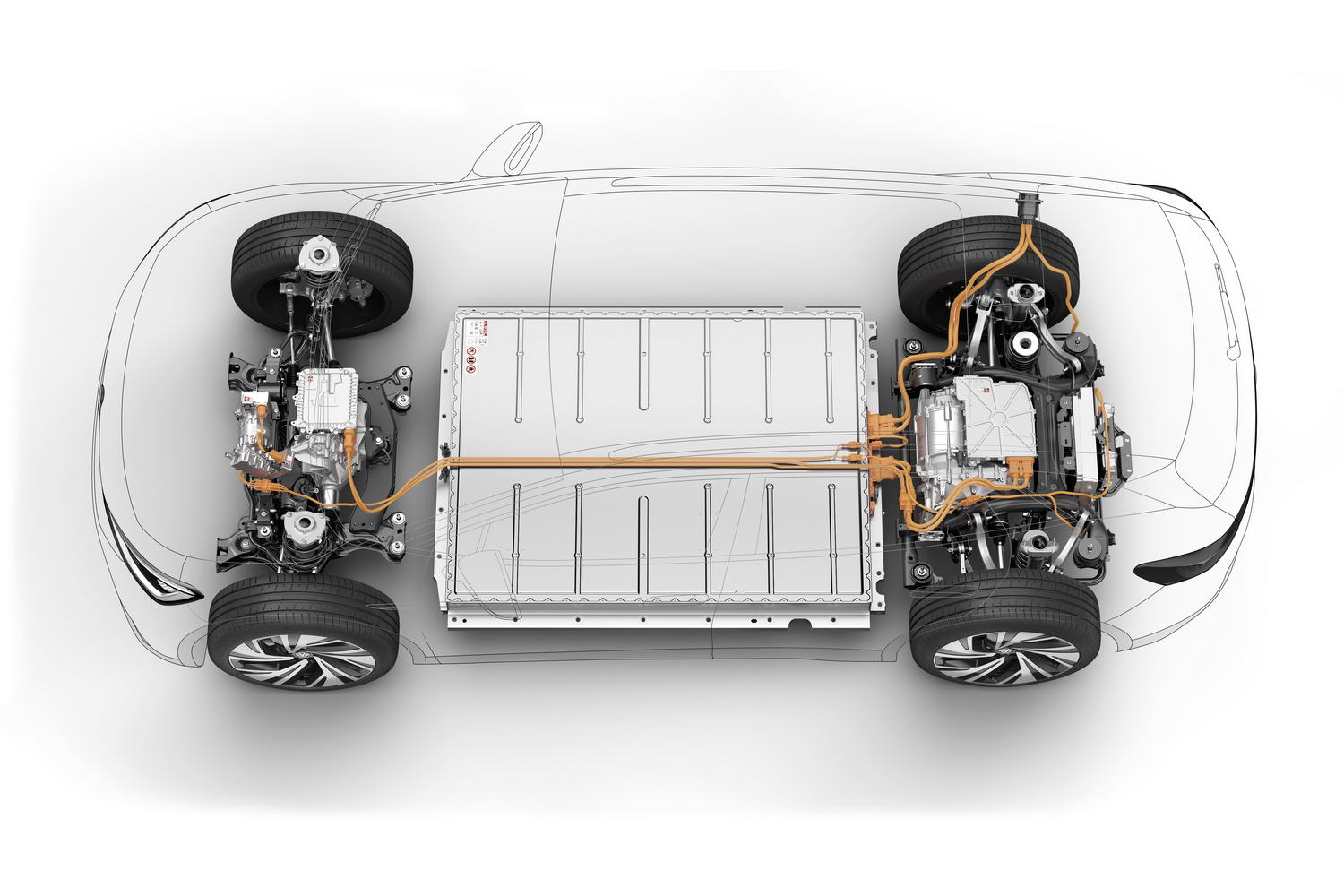 Between the wheels you'll find a 77kWh (net) battery pack, good for 480 kilometres on the WLTP regime. It can be recharged at up to 11kW on AC connections or 125kW on DC outlets.