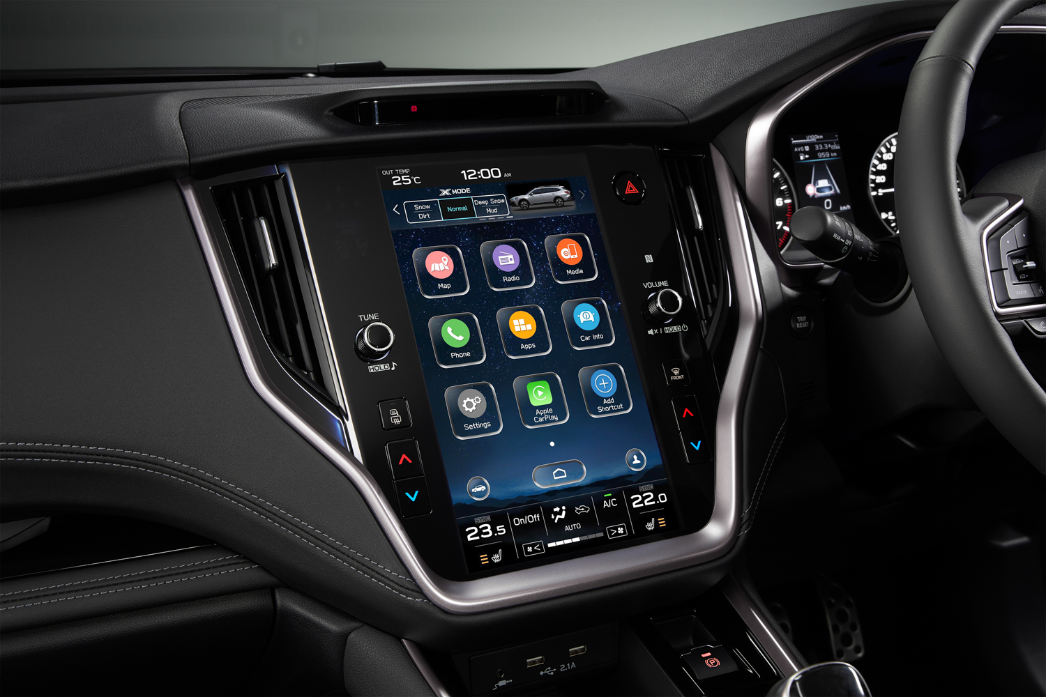 Inside, while the overall style will be familiar to anyone who drove the outgoing Outback, there are some significant differences. The base of the windscreen has moved forwards, and the cabin is wider to allow for more interior space. The shape and style of the dashboard are lifted pretty much directly from the current VX and Forester models, but in the centre of the dash is a new 11.6-inch portrait-style touchscreen. There's also an interior camera with a facial recognition system that can store up to five people's faces and details and automatically adjust the car's settings to suit as soon as you sit inside.