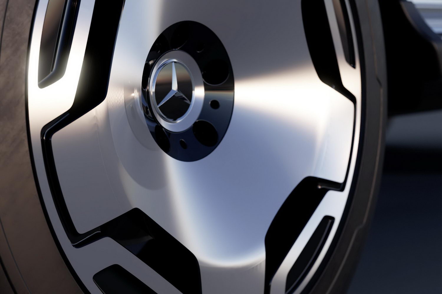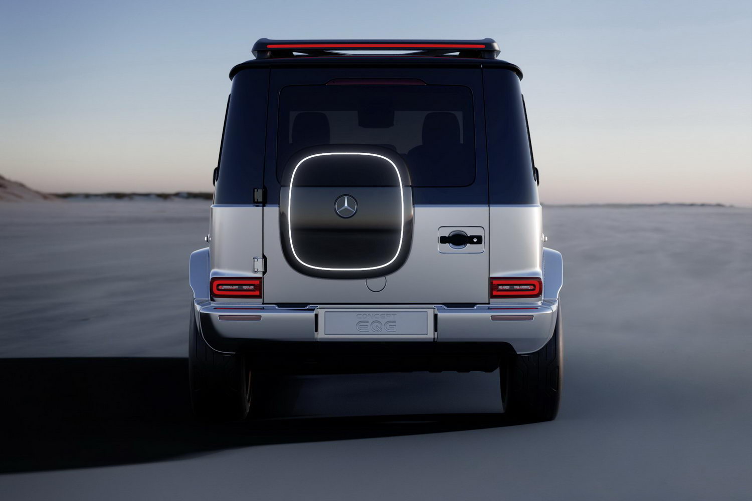 The concept sits on 22-inch aluminium wheels, but rather than the traditional spare wheel attached to the G-Class's rear door, instead there's a locking box intended for storing charging cables.