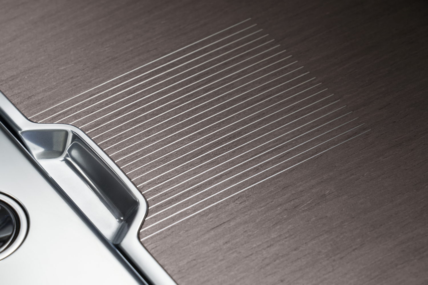What you really want to know about though is the rear with its curved black arch. Frascella explained to us that the idea for it came from the dark screen of an iPhone, which only lights up on request. The same is true of the taillights, a very clever piece of engineering that includes some of the 125 patents on the new Range Rover. The lights use LEDs but rather than facing outwards as you would expect, they face into the car and shine onto a number of mirrors that magnify the light and shoot it back out through the dark plastic with enough intensity to meet legal standards.