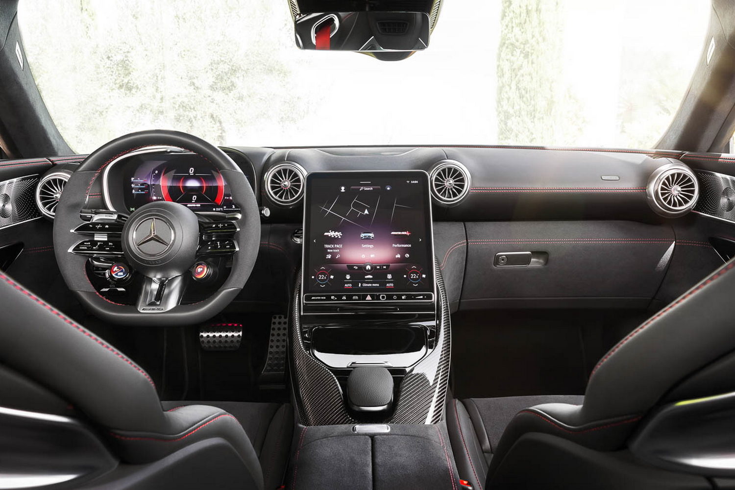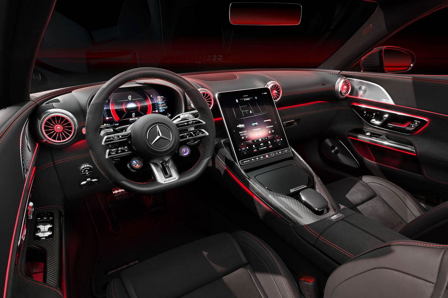 Inside, much of the cockpit - including the all-digital instrument panel and the huge, reclined central touchscreen - is drawn from the S-Class saloon. However, it's all set into a shape that's much lower and sportier, and which features distinctive 'bulls-eye' round air vents in place of the dourer square vents of the S-Class. The driver's instrument screen, instead of being free-standing, is encased in a distinctive 'visor' for a sportier look.