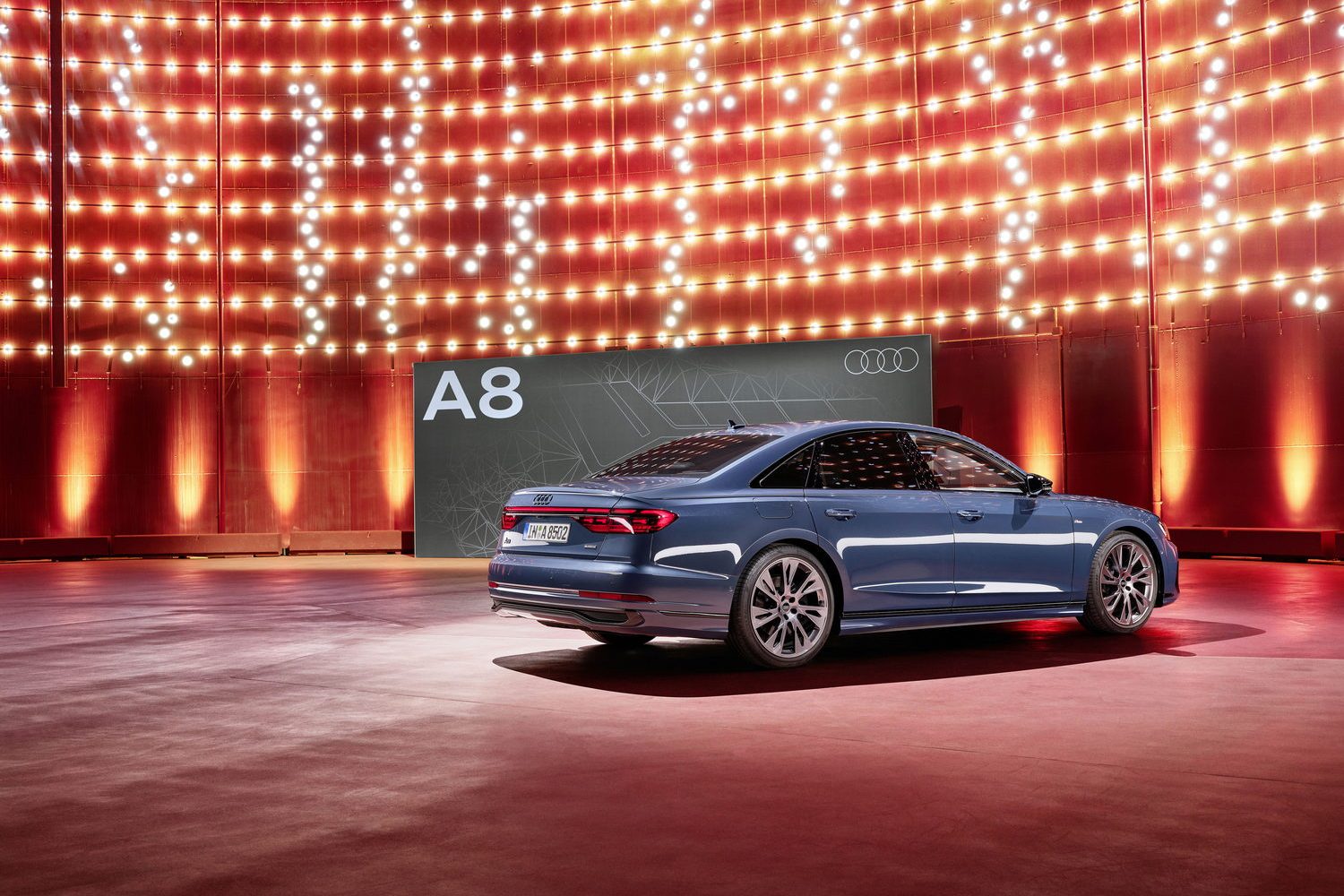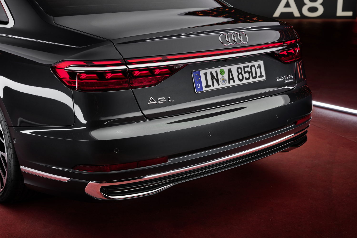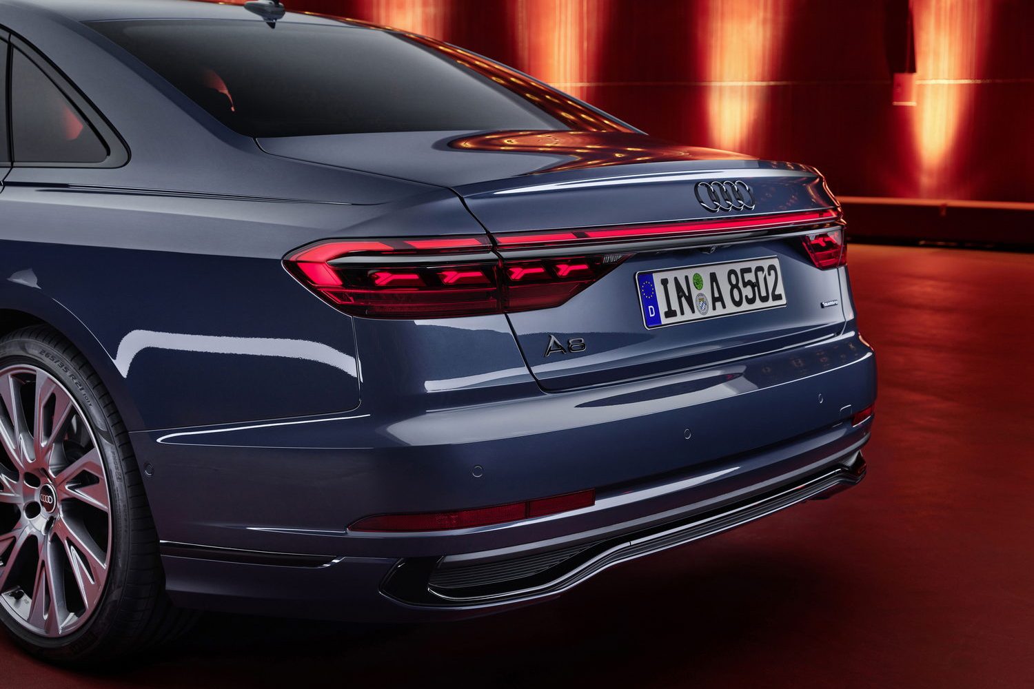 The side of the A8 gets new skirts along the bottom of the doors, while around the back there are new bumpers and high-tech OLED brake lights that allow you to alter the light signature at the rear of the car to your taste. They also light up brighter if they detect that the car behind is getting too close.