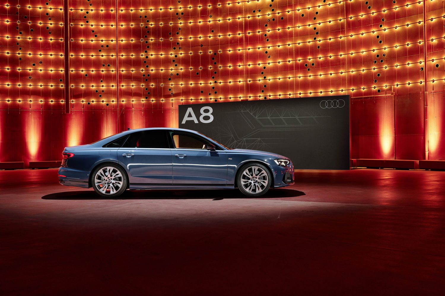 For the first time, the A8 will be offered as an S line model designed to be sportier looking with a blacked-out grille and more open front air intakes. The S line will also get optional 21-inch wheels and a darker finish to the OLED rear lights.