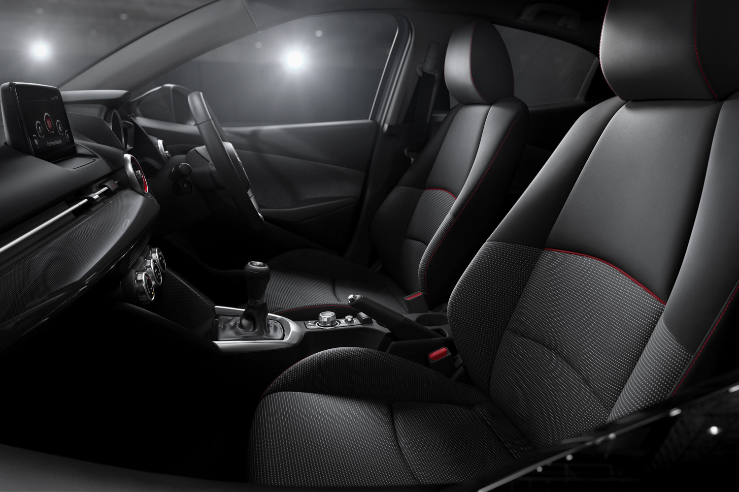 Specifications vary between models, but all get gloss black alloy wheels and piano-black door mirror caps, as well as extra equipment. On the Mazda2, the black upholstery is enhanced with red stitching, while models with leather trim get it in a burgundy red finish.