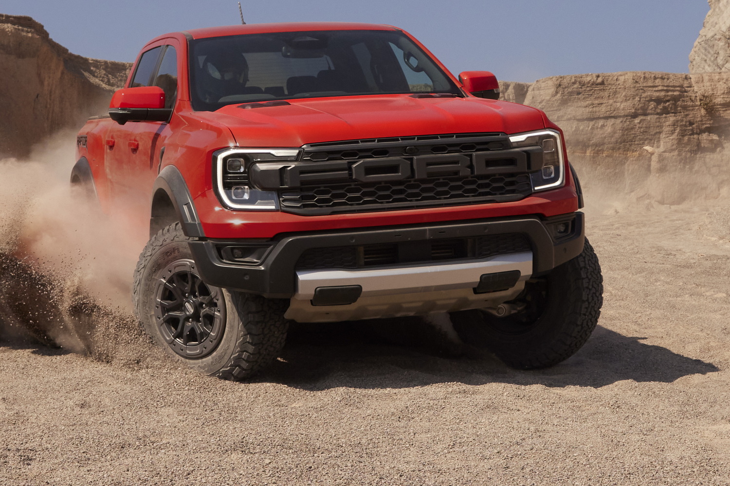 Full-time four-wheel drive is fitted, and there's an electronically-controlled two-speed transfer case. Front and rear locking differentials are also included as standard, while seven selectable drive modes mean the Ranger Raptor can tackle anything from smooth tarmac to low-speed rock crawling and high-speeds dirt tracks.