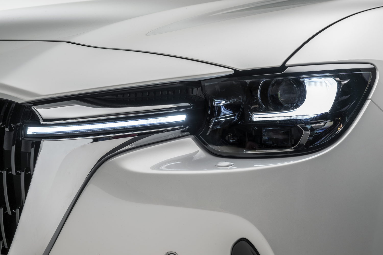 At first glance, the CX-60 looks like an evolution of the CX-5, but it's a larger car in all directions and there's a more pronounced 'cab-back' look to the silhouette. Other than that, there's a new grille design and, while the headlight design is similar to that used elsewhere in the Mazda range, it's a new approach with the two elements stacked instead of next to each other, while a distinctive daytime running light graphic encroaches on the grille.