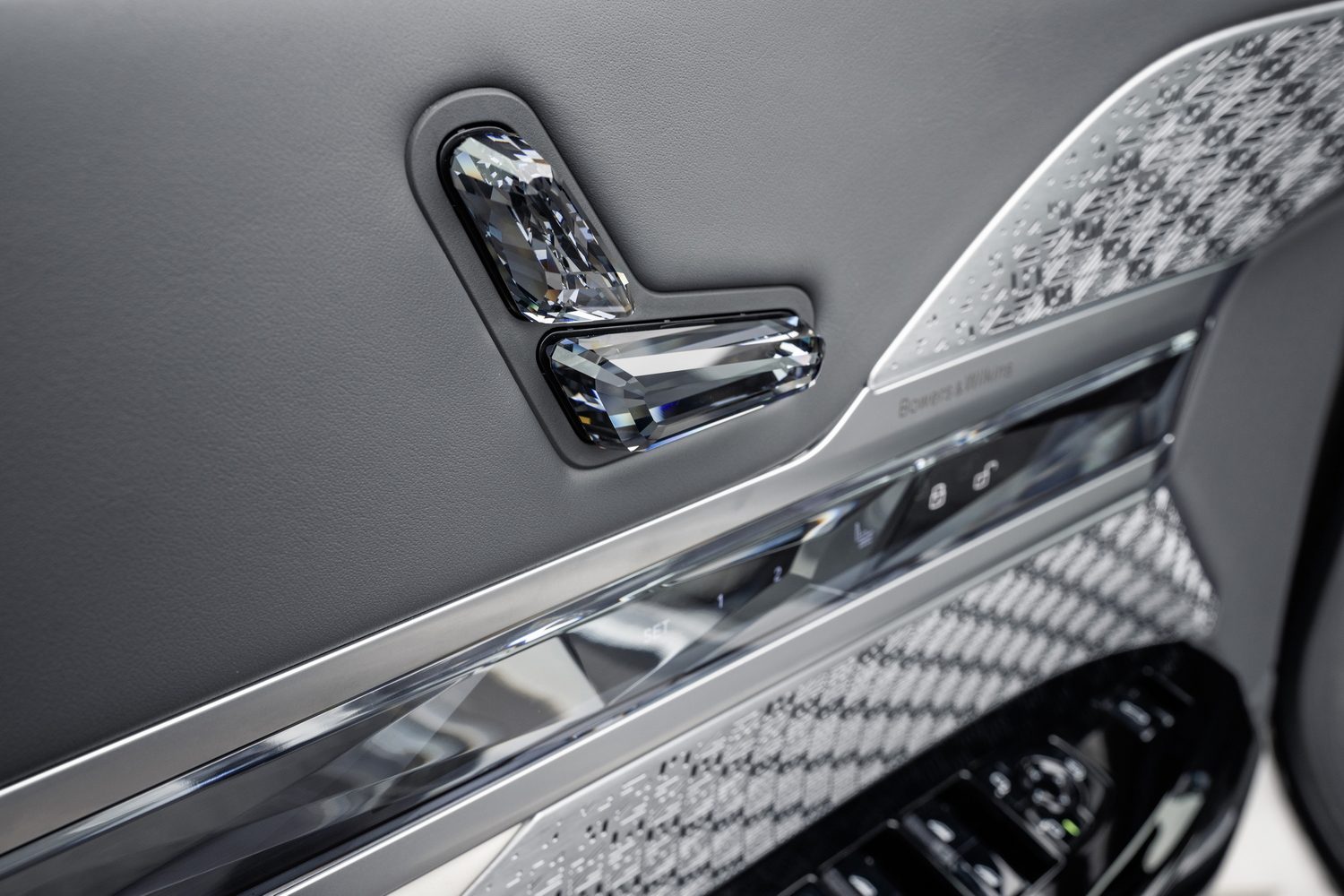 The i7 model gets blue accents on the lower front air intake as well as along the side skirts and at the rear, and for buyers looking to make the front of their 7 Series pop that little bit more, there's the Iconic Glow option, which back-lights the grille and adds inset Swarovski crystals to the DRLs for an enhanced sparkling effect.