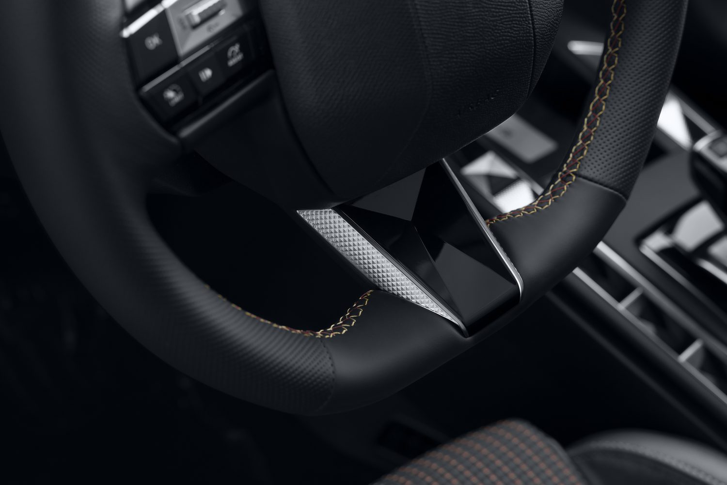 At the rear, a lacquered black strip freshens up the lights and tailgate and is embedded with "DS Automobiles" lettering in stainless steel.