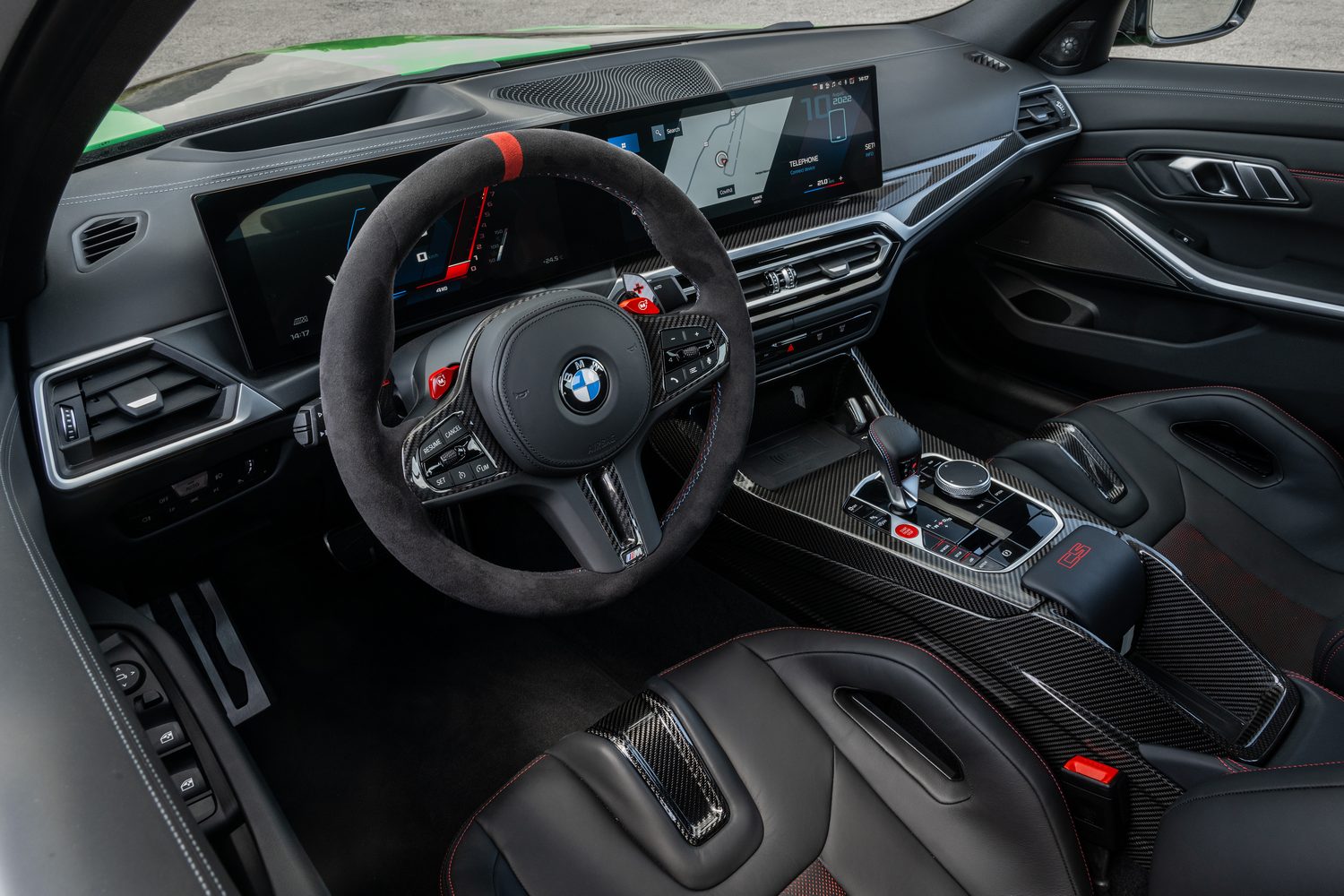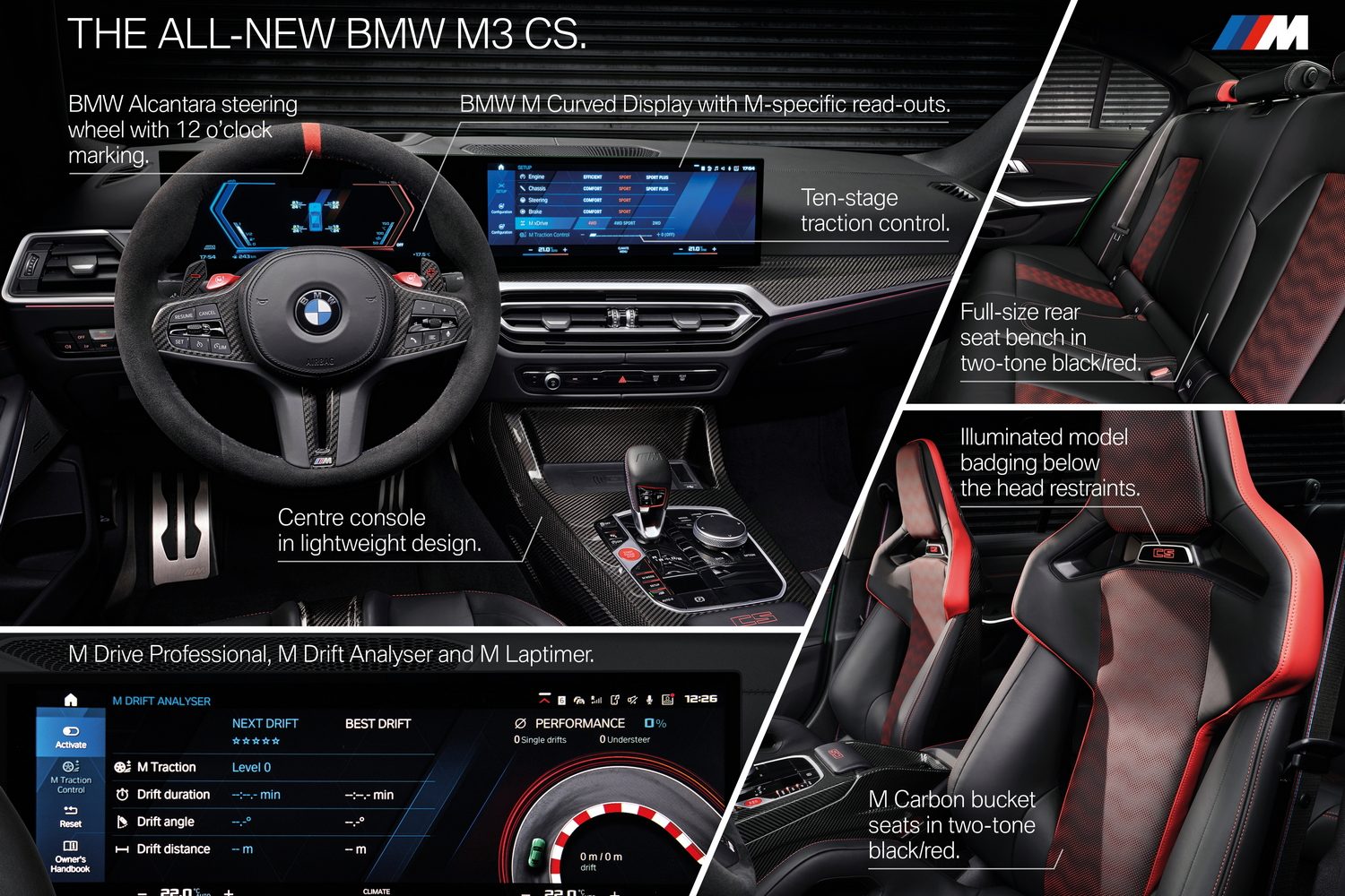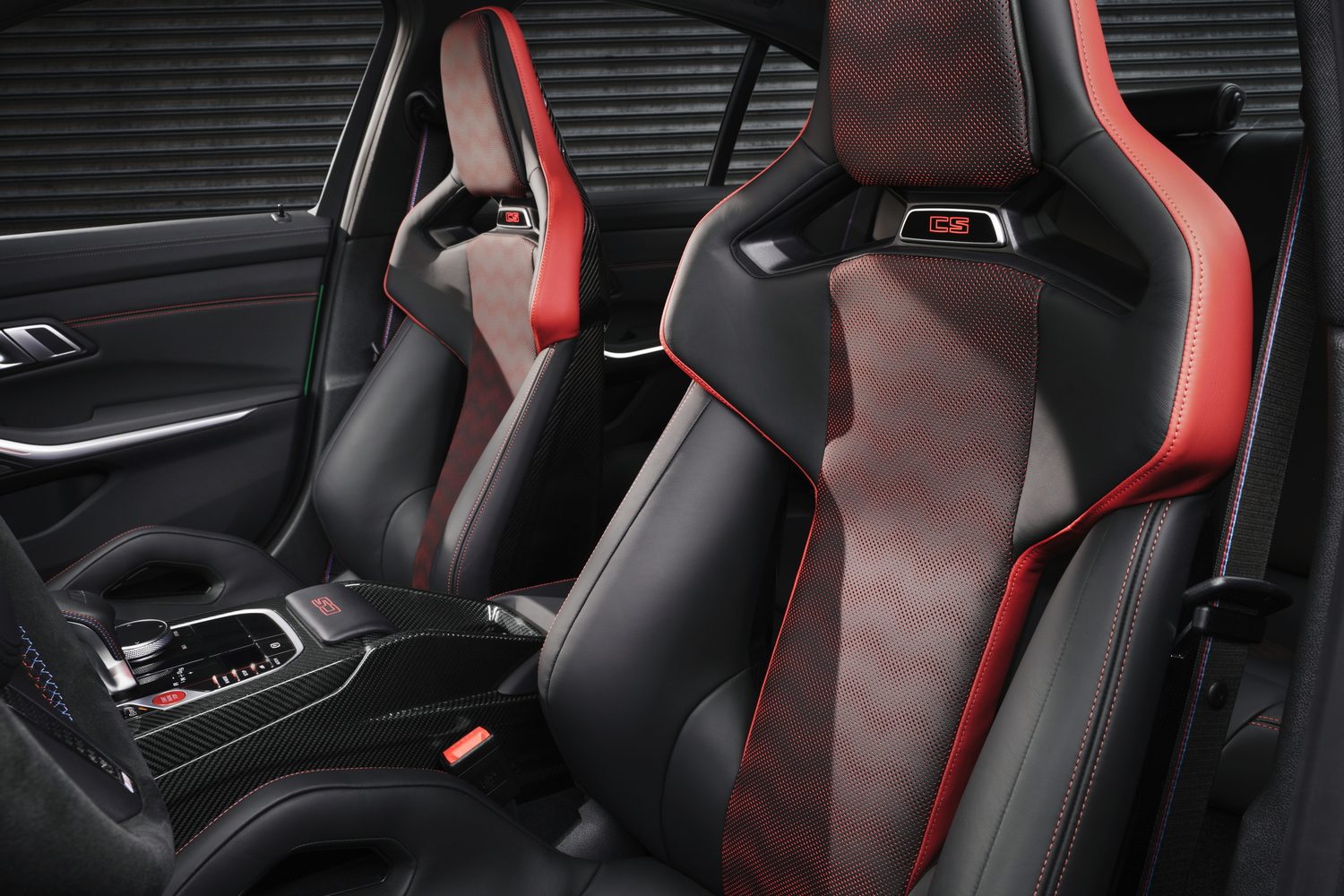 Inside, the usual motorsport theme is extended, starting with a new interpretation of the M Carbon bucket seats, again using a red and black palette. The same colours are found on the conventional rear bench seat, while the CS logo garnishes the pared-back centre console.