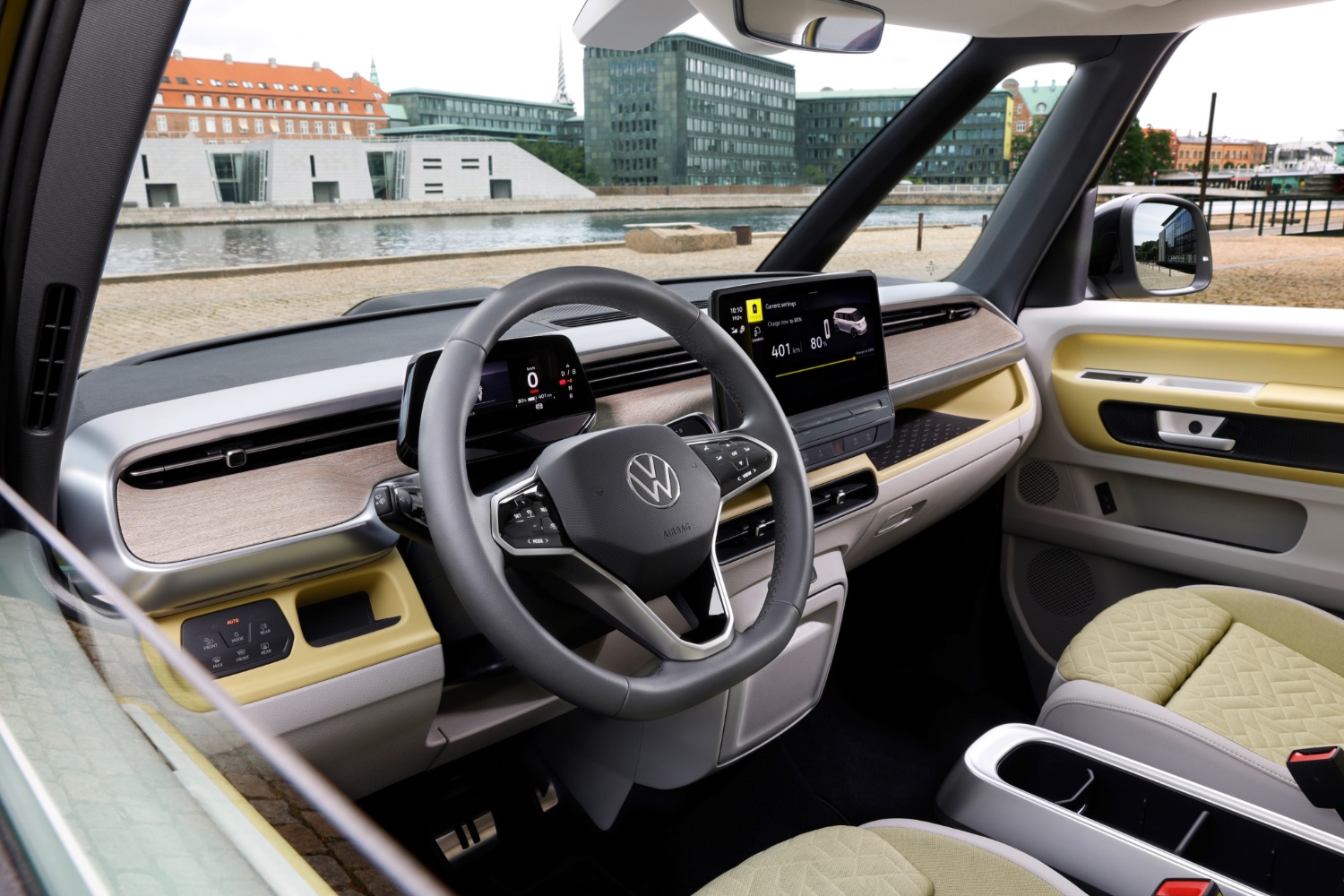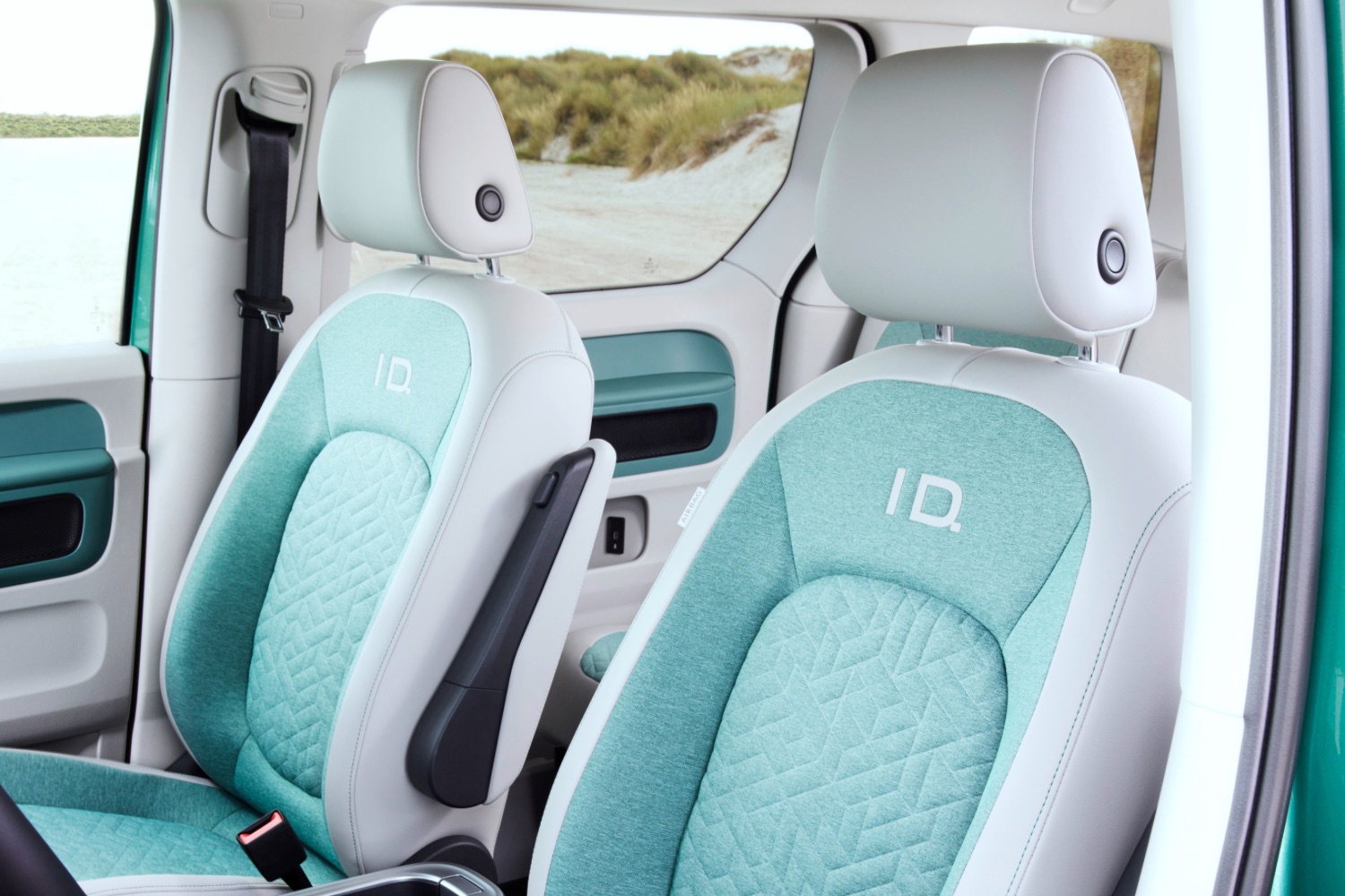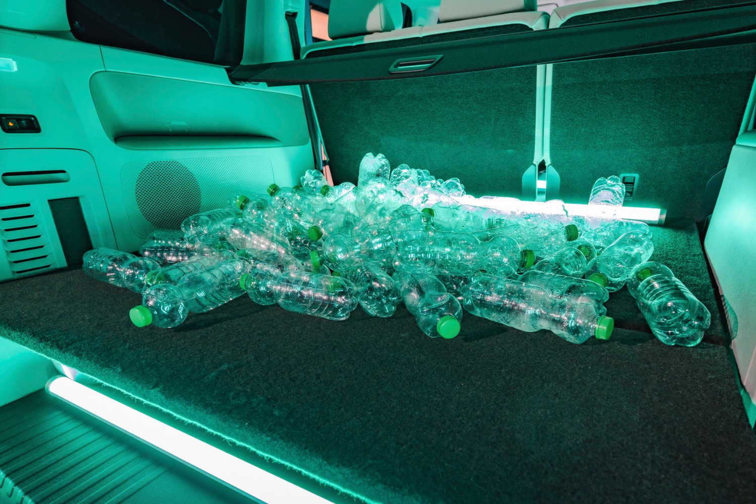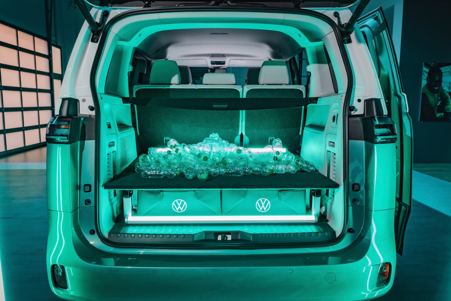 The ID. Buzz is leading the way with this sort of thing. Alternative materials made of ocean plastic or old PET bottles (to be exact, 63 size-500ml bottles) are already being used for Buzz interior components, while the surfaces of the headliner and floor covering in the Buzz are made completely from recycled polyester. Recycled plastics can also be found in the insulating layer of the carpet. The same applies to components such as the underbody cladding and the wheel housing liners.