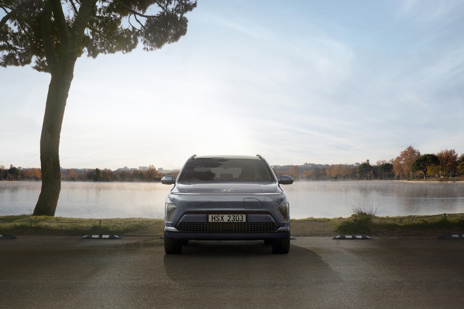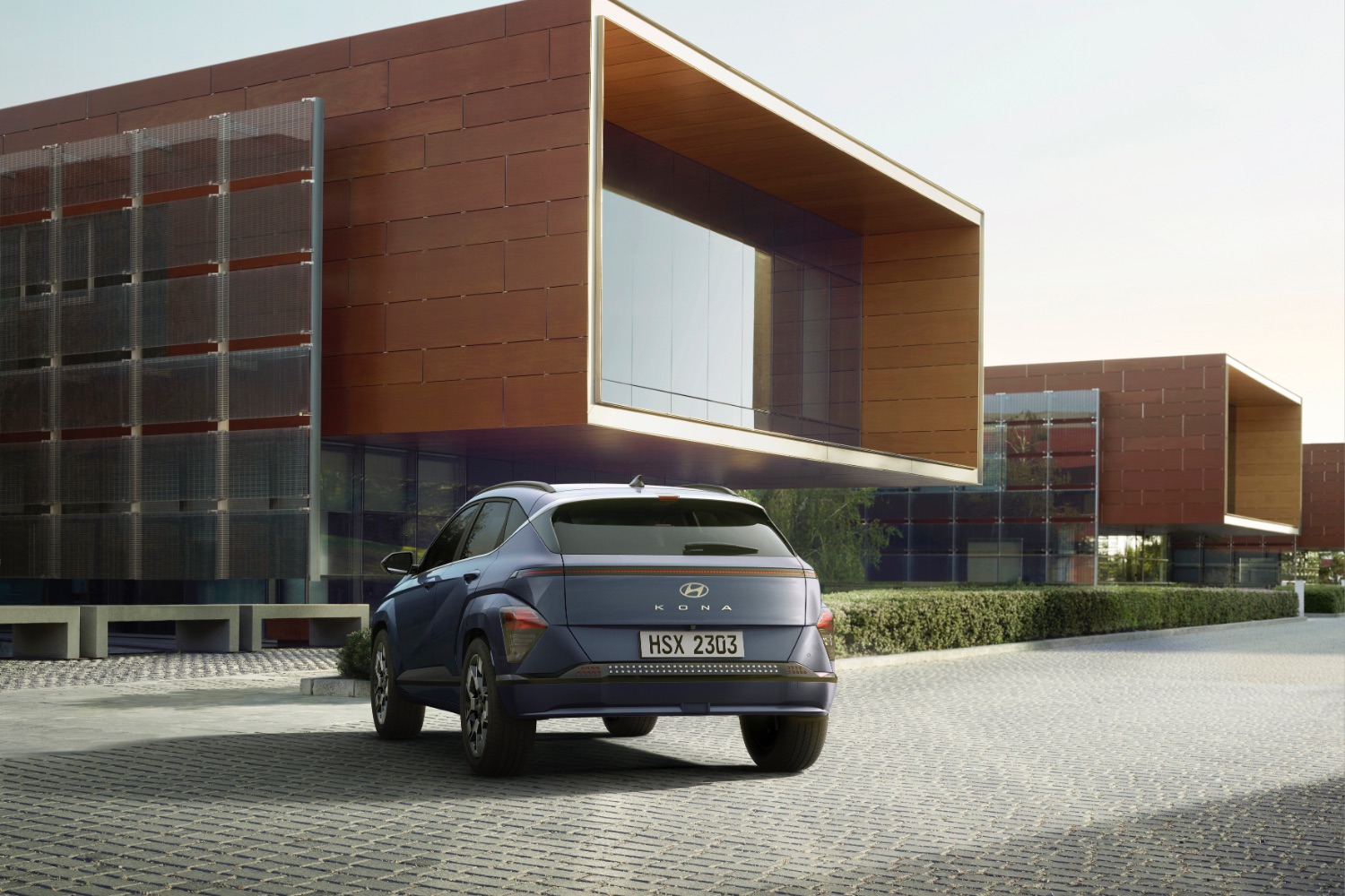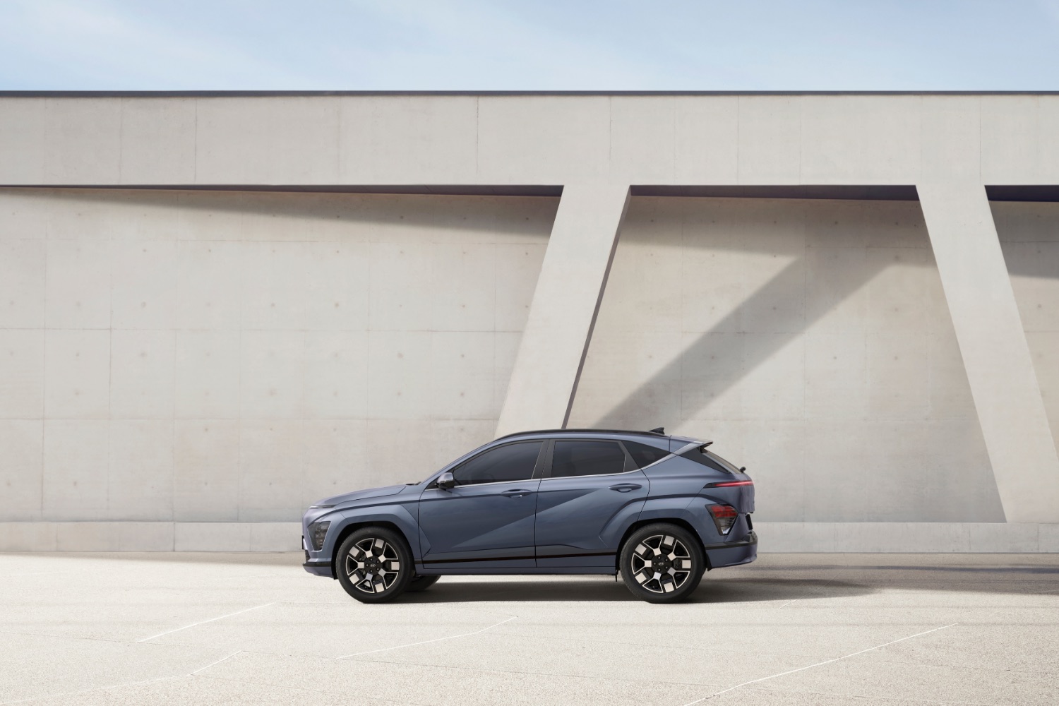 Visually, you can see a certain kinship between the new Kona and the current model, but this electric version takes clean styling to the next level, with a chiselled face that's broken only by a thin strip of LED lights around the edge of the bonnet, giving it a distinctly futuristic, robotic look.