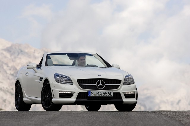 The new SLK 55 AMG gets a 5.5-litre V8 engine to match its badge, the normally aspirated unit developing 420hp and 440Nm of torque. AMG's chassis people have been as busy as those shoehorning the V8 under the bonnet, with sports suspension, torque vectoring brakes and AMG Direct Steer all featured. There's the option of a Handling Pack too, if you want a stiffer ride combined with a limited slip differential, composite front brakes and AMG's Performance steering wheel. It all looks like a mini SL 63 AMG too, which is no bad thing.