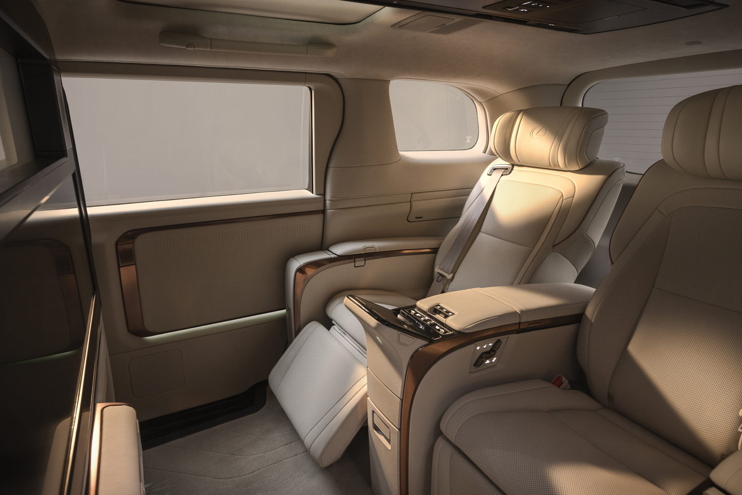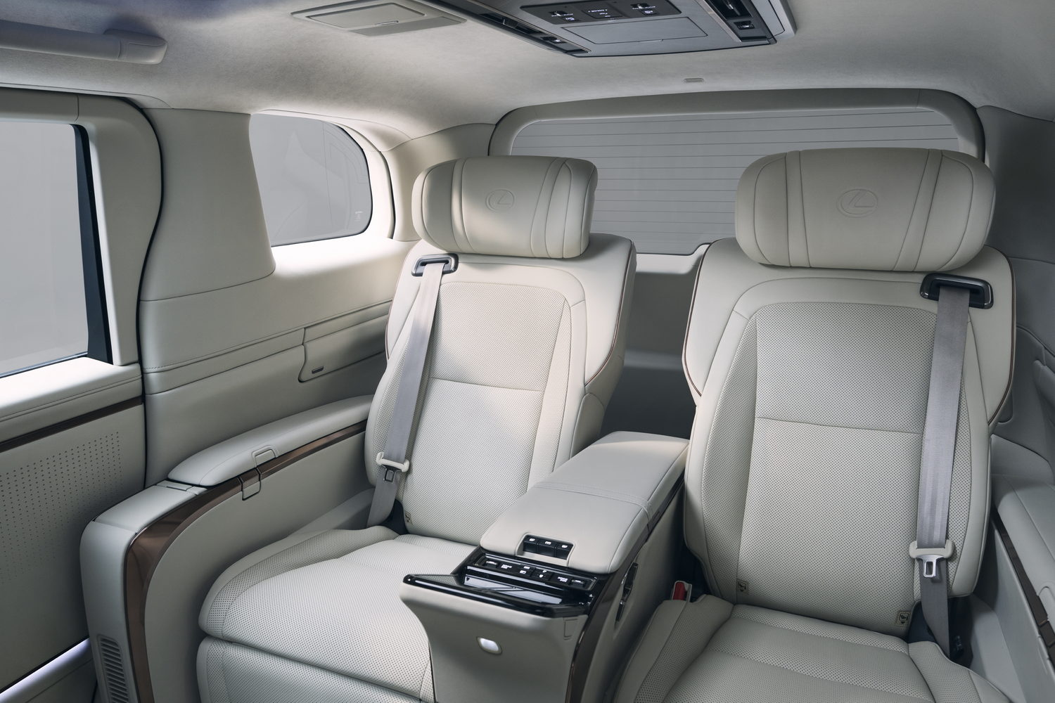 According to Lexus: "The seats are designed for perfect support and comfort; the cabin environment is precisely controlled for temperature, air quality and lighting; and there is easy, intuitive access to connectivity and entertainment, including a 48-inch HD widescreen monitor and bespoke Mark Levinson 3D Surround Sound reference audio system with a 23-speaker array."