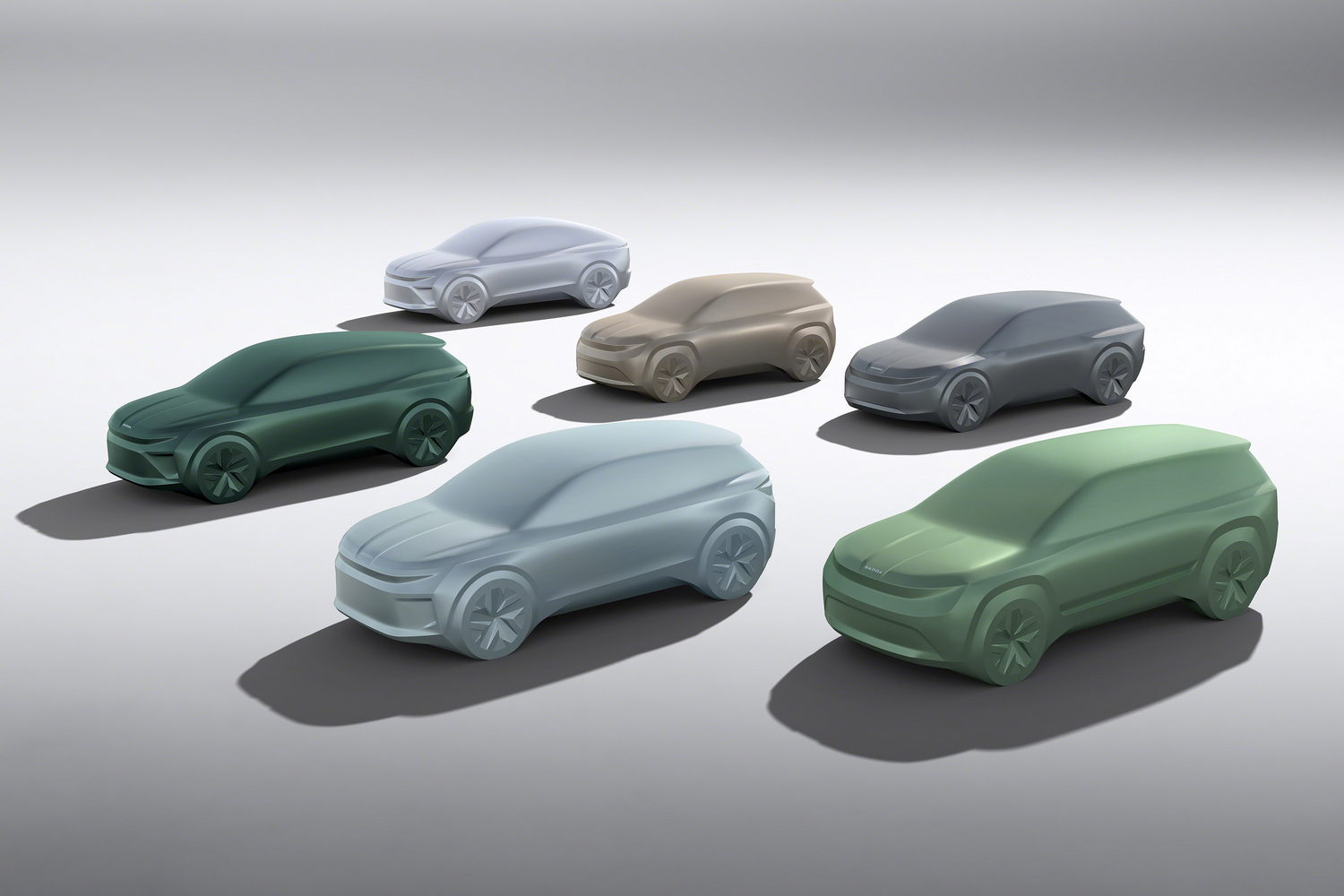 Skoda has confirmed that it will launch four completely new electric cars by 2026, bringing the brand's total number of electric vehicles (EVs) to six. Sitting alongside updated versions of the Enyaq SUV and its fastback-shaped sibling, the Enyaq Coupe, will be a new small car, a Karoq-replacing SUV and a new seven-seater, as well as a family estate - all powered by battery.