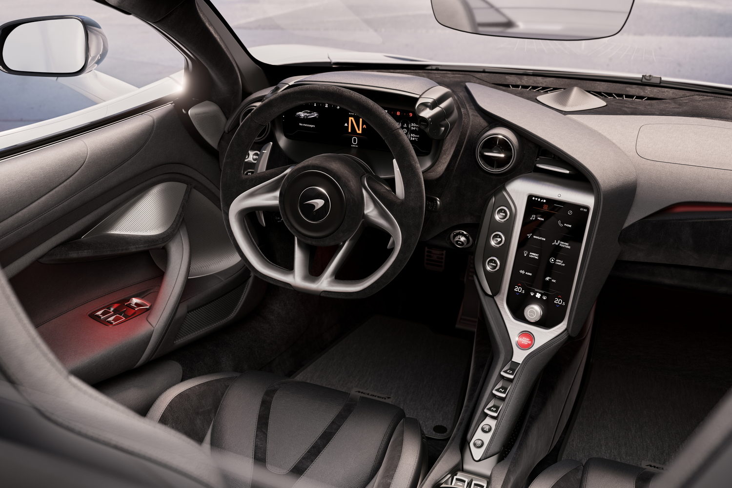Inside, as ever, McLaren doesn't add switches or buttons to the steering wheel, but there's a new central touchscreen which is said to be more responsive, and there's a high-end Bowers + Wilkins sound system, assuming you can hear it over the engine's 'distinctive crescendo...'