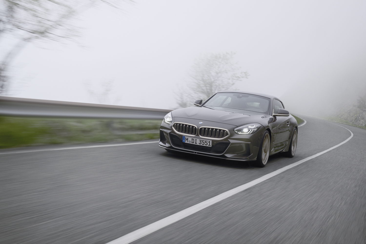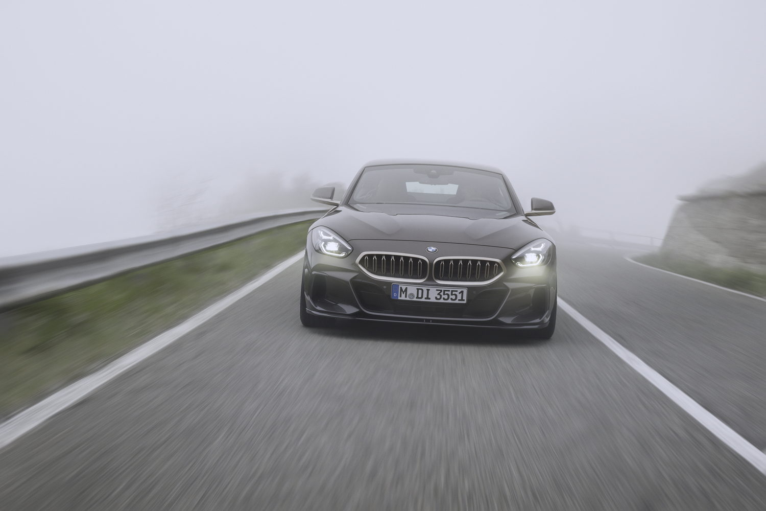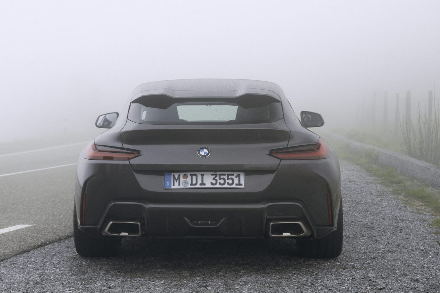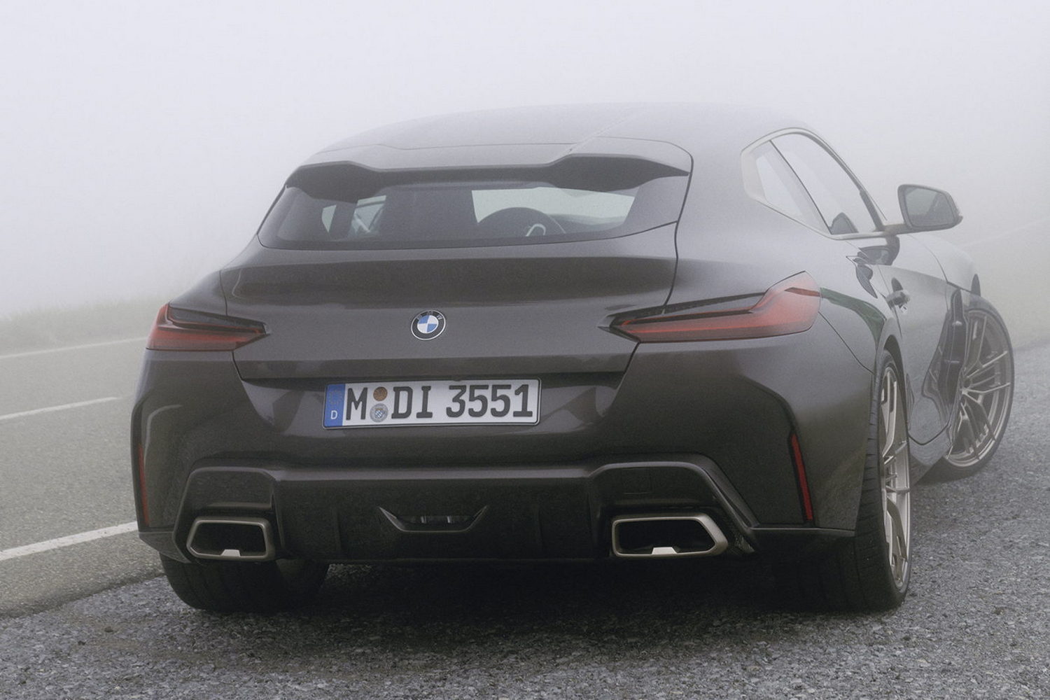 The Z4's rear lights are carried over, while its integrated spoiler has been redrawn to better combine with the new roofline. A small rear window is topped by another spoiler, sculpted to fit in with the roof's central channel. On the side, new windows aft of the doors feature an exaggerated Hofmeister kink.