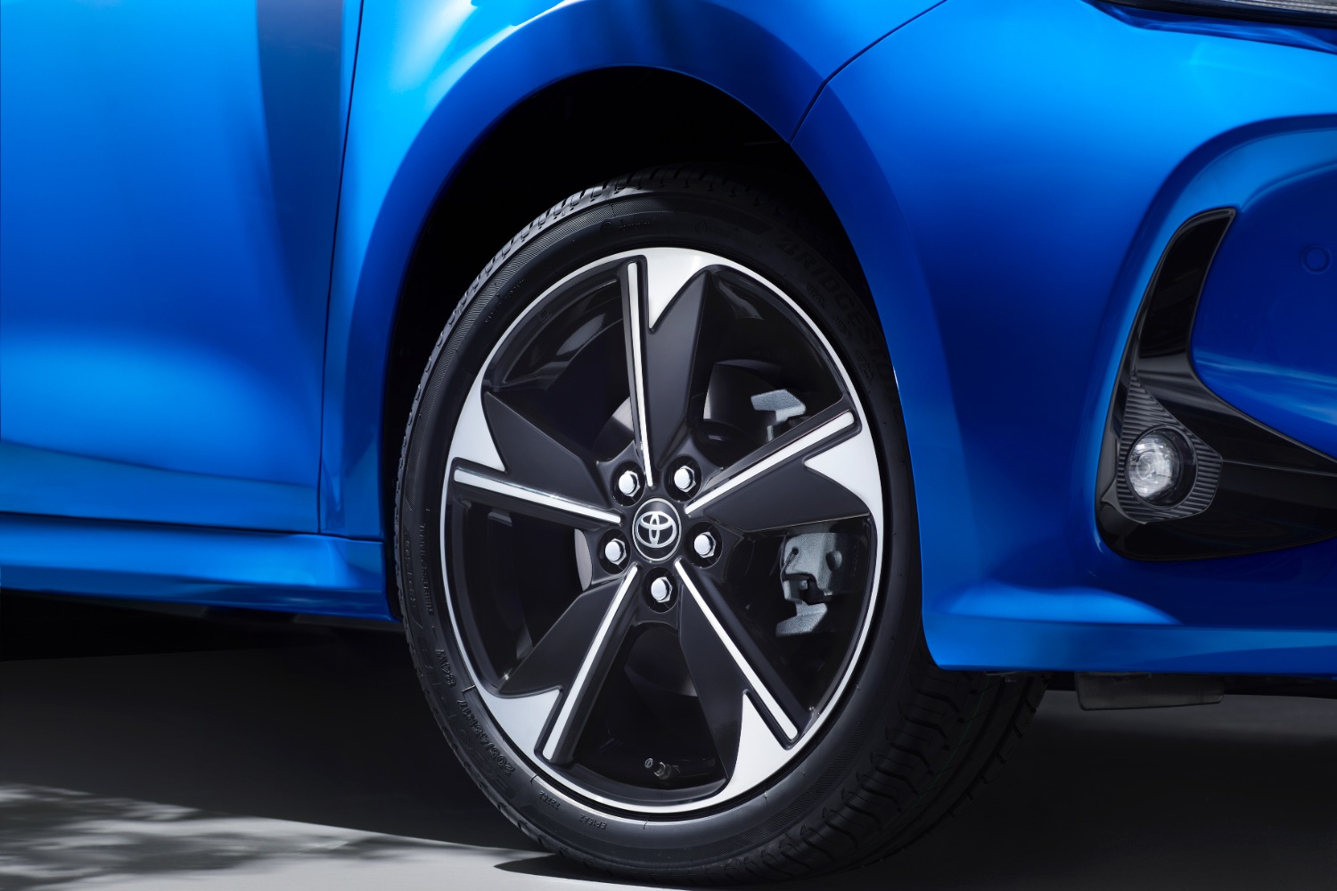 The new Yaris will be available with newly designed five-spoke alloy wheels in a silver or machined finish. A new 'Juniper Blue' paint scheme will also be made available.