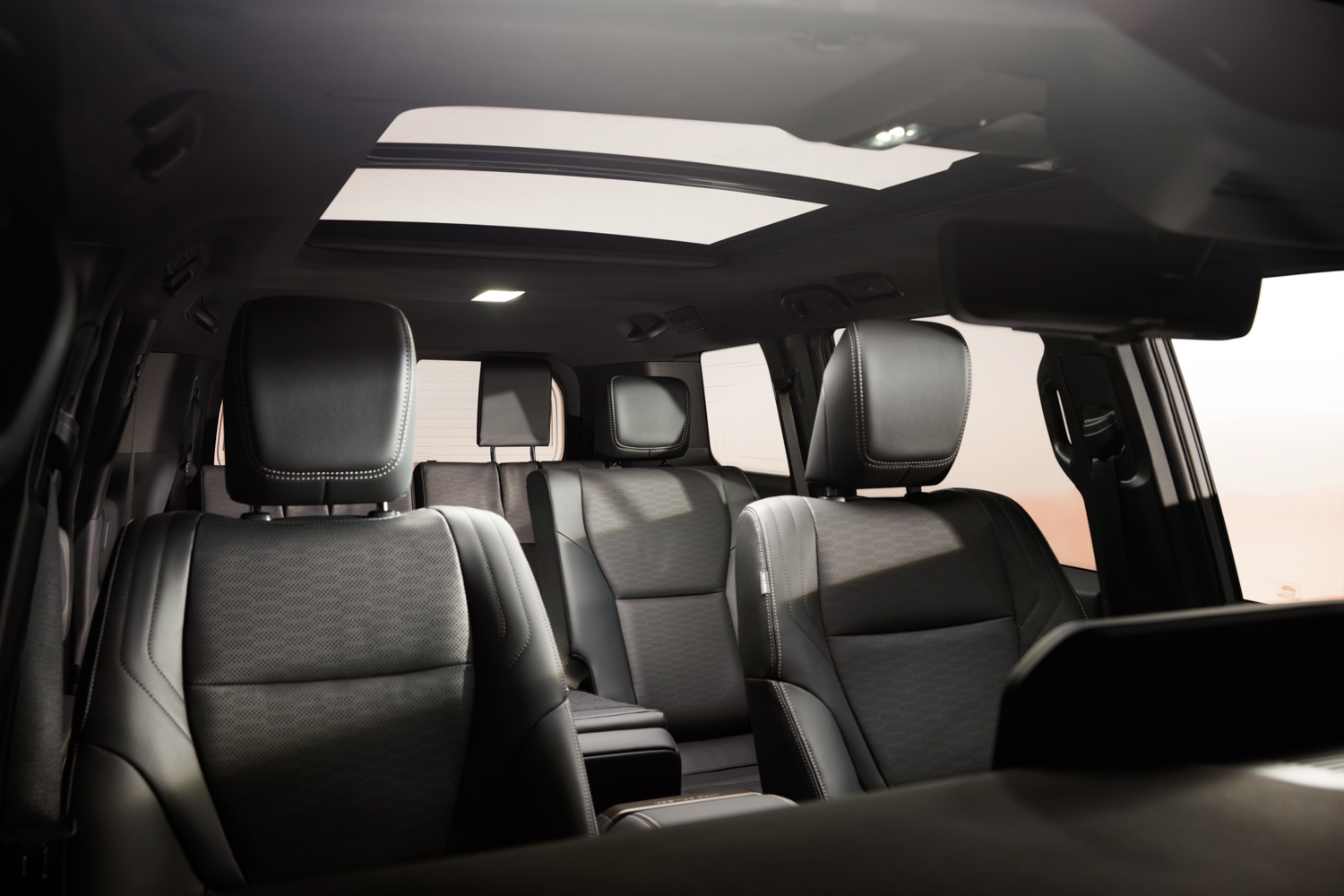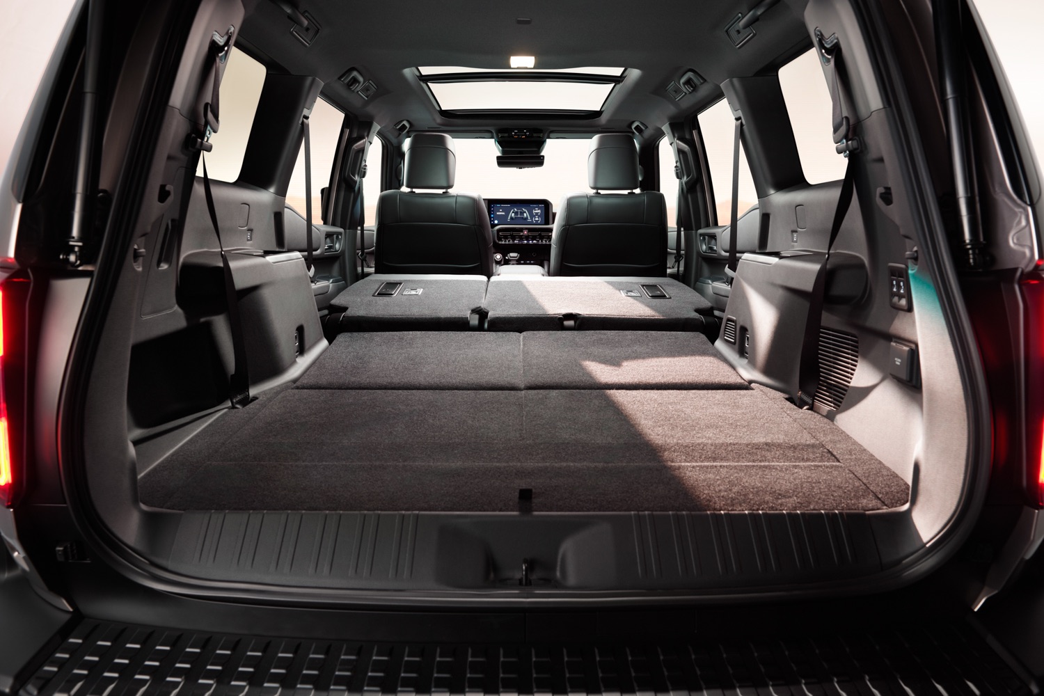 Buyers will have the choice of five- or seven-seat configurations inside, and the cabin features a design specifically designed to help when driving off-road. The instrument panel is arranged horizontally with panels and switches shaped for easy operation. A lower cowl enhances the driver's visibility, and the belt line allows deeper side windows to be fitted.