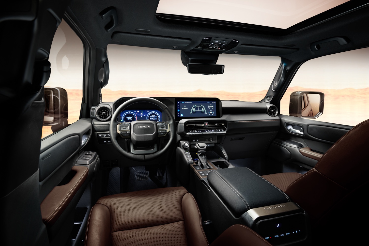 The Land Cruiser will use a 2.8-litre turbodiesel engine producing 204hp and paired with a new eight-speed Direct Shift automatic transmission. It will have a towing capacity of up to 3,500kg. In 2025 Toyota will add an electrified powertrain to the Land Cruiser lineup featuring an efficient diesel engine with 48-volt mild hybrid technology to improve fuel economy.
