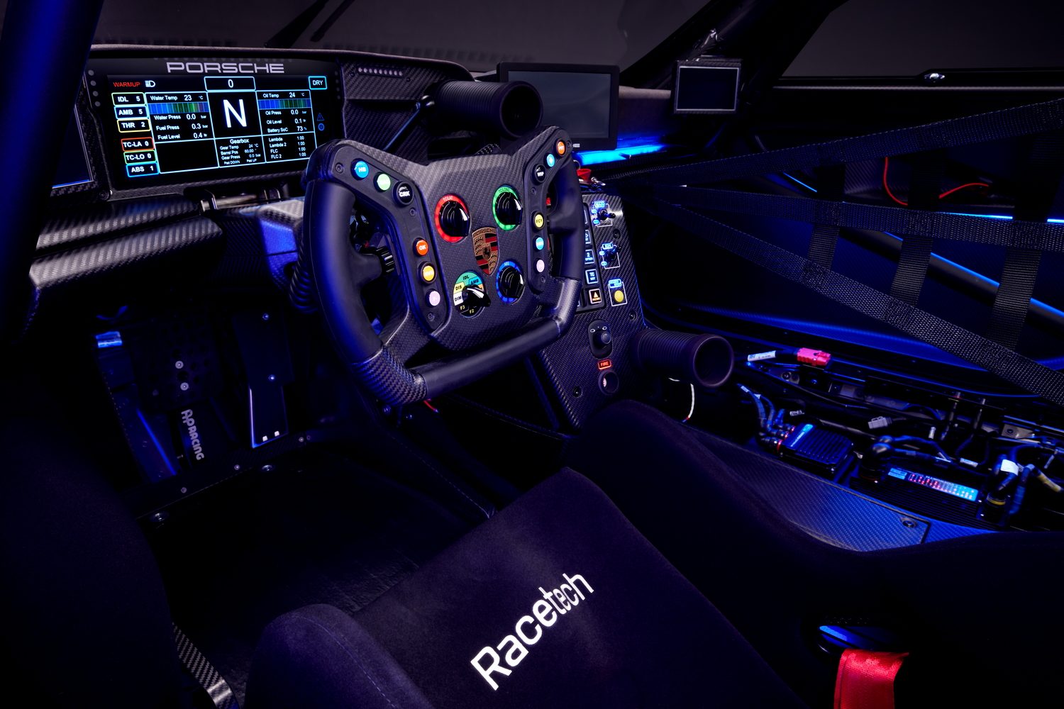 Exterior colours, by the way, amount to a bodyshell finished in Agate Grey metallic and bodywork finished in pure carbon. There are then seven colours to choose from, including Star Ruby and Signal Orange, while three paintwork designs on a Porsche motorsport theme are provided: Rennsport Reunion, Flacht and Speed Icon.